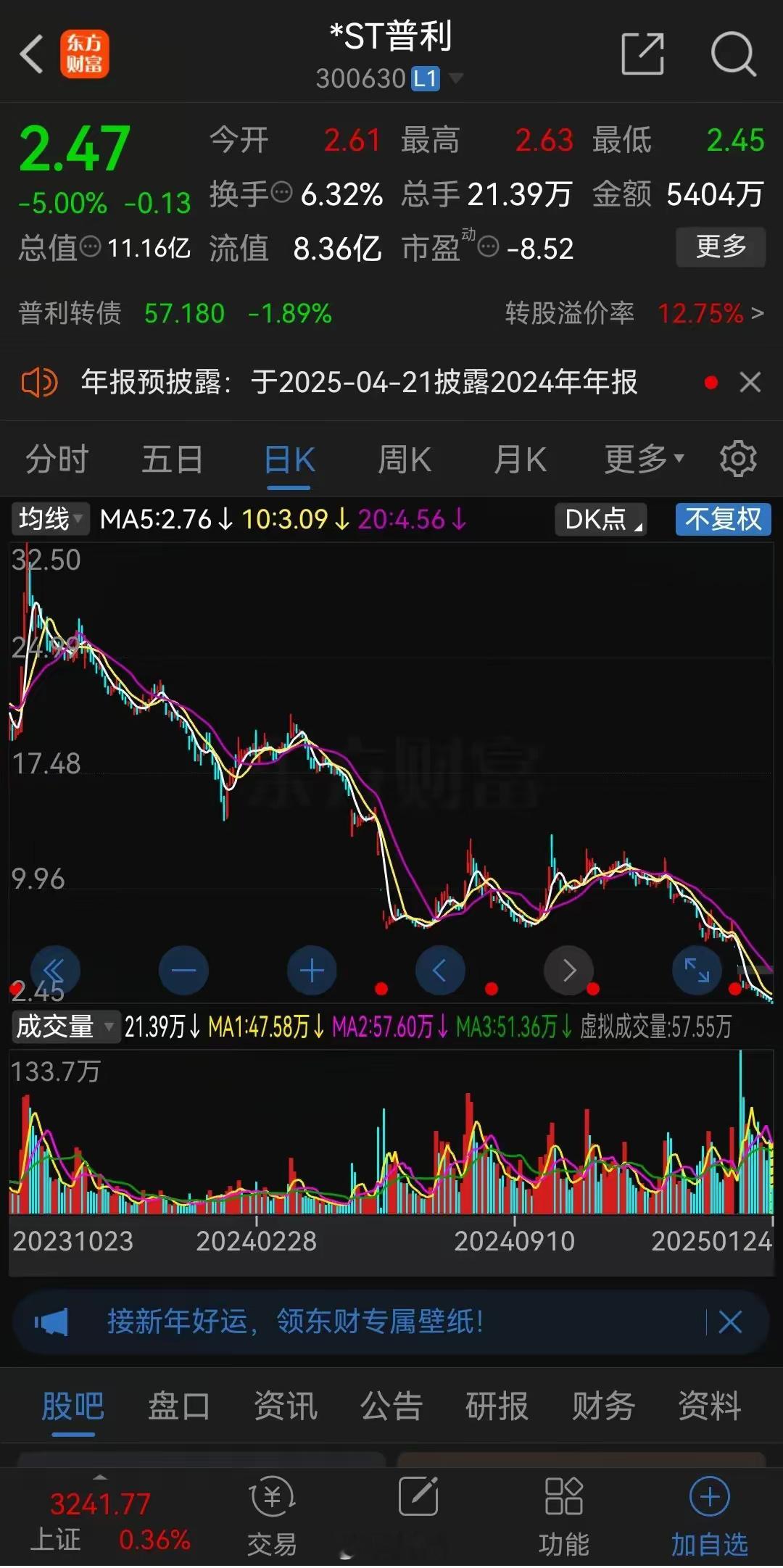 昨天普利制药发布公告称,普利转债的转股价格将由11.22元每股调整到4.89元每股,公司股票存在重大违法强制退市的风险。