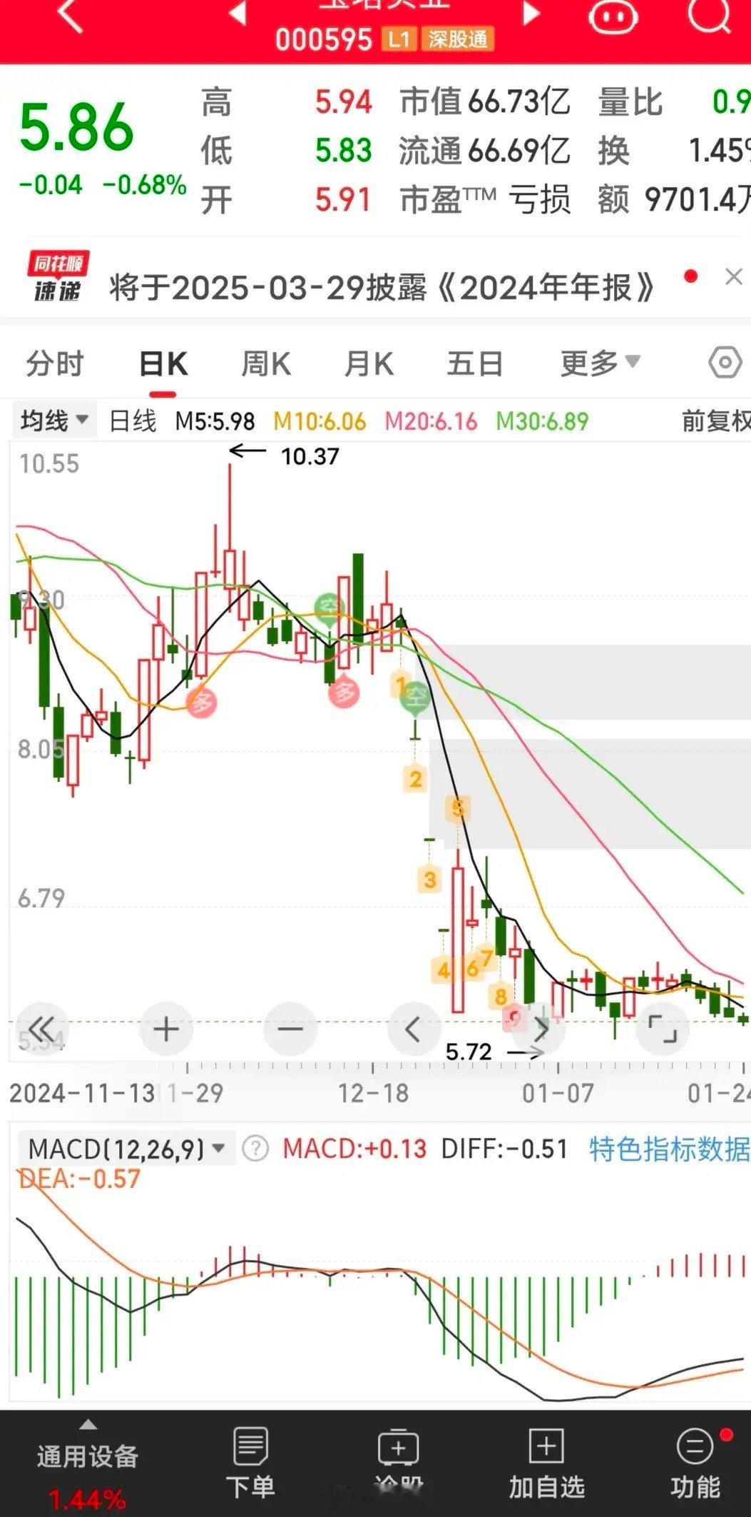 同事炒股十几年,听说之前在宝塔实业这个股上赚了不少钱,所以前段时间看到跌停就去抄底把这个票给买回来了!这一次就没这么幸运了,买进后股价一路向下,套了她二十多个点!所以看着票的业绩不行也抱着侥幸心理死扛着!