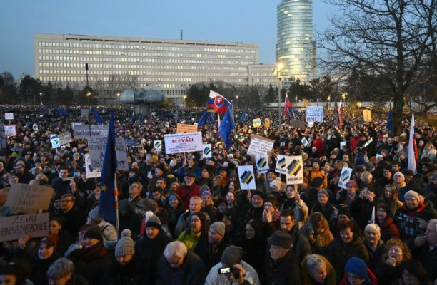 据2025年1月24日报道,上万名抗议者聚集在斯洛伐克布拉迪斯拉发,反对斯洛伐克总理罗伯特.菲科的亲俄政策! 菲科最近表示,斯洛伐克有可能改变外交政策取向,退出欧盟和北约,这是这位总理最近采取的其他举措之一,这些举措激起了抗议者的愤怒。抗议者在布拉迪斯拉发高呼“斯洛伐克不是俄罗斯,斯洛伐克是欧洲”、“我们受够了菲科,请立即辞职”。 周五的集会覆盖 28 个地点,比两周前增加了一倍多。此前菲科本周早些时候指责组织者和反对派与一群未指明的外国人有联系,并称这些人正致力于策划斯洛伐克政变,导致紧张局势加剧!