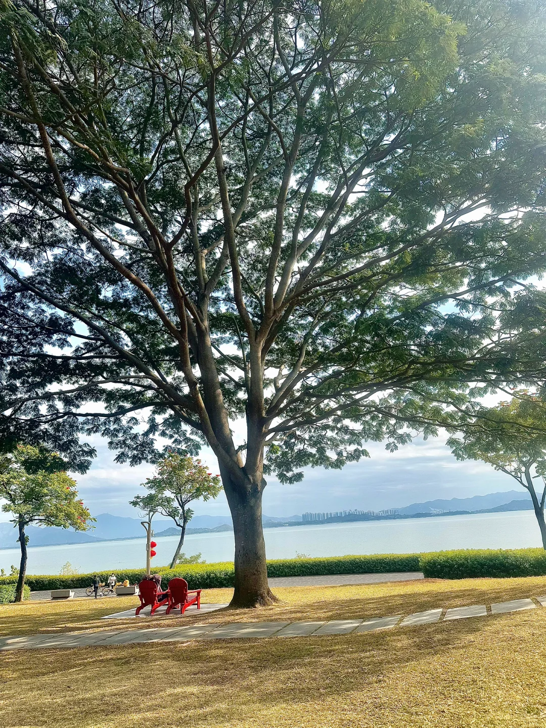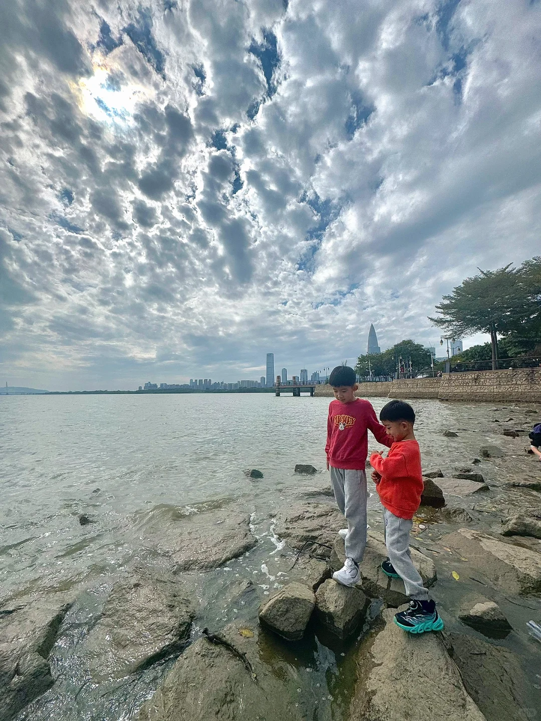 中午,我们选择了西贝用餐,这里可是小朋友们的心头爱。餐后,步行至地铁站E口,过个马路就是深圳湾公园。从地铁C口出来,几步之遥便是观光车的起始站。全程4.75KM,坐在观光车上吹着惬意海风,沿途还可以下车抓鱼,下午3点以后,地铁站C口附近还可以看到很多海鸥!🐦