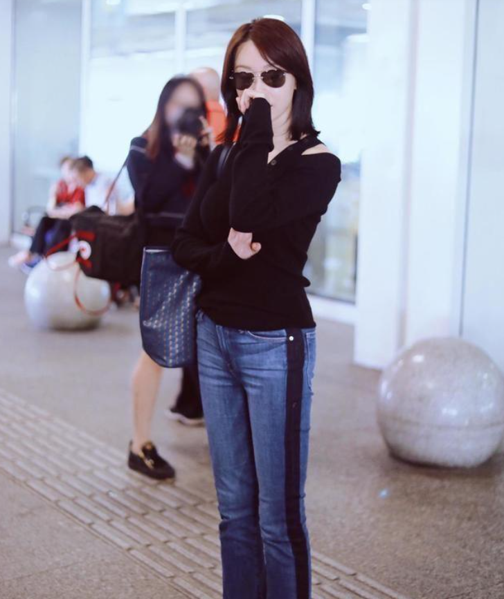 77年的陈数还有“过山车”身材! 穿露肩针织衫配牛仔裤,比例太出众!