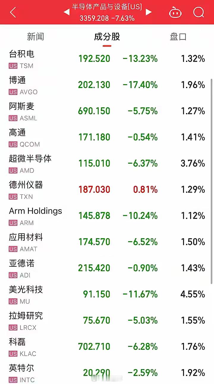 此外,美股半导体芯片板块全线下跌,博通跌超17%,台积电跌超13%,市值缩水严重!受此影响,纳指重挫超600点,跌幅3.07%。