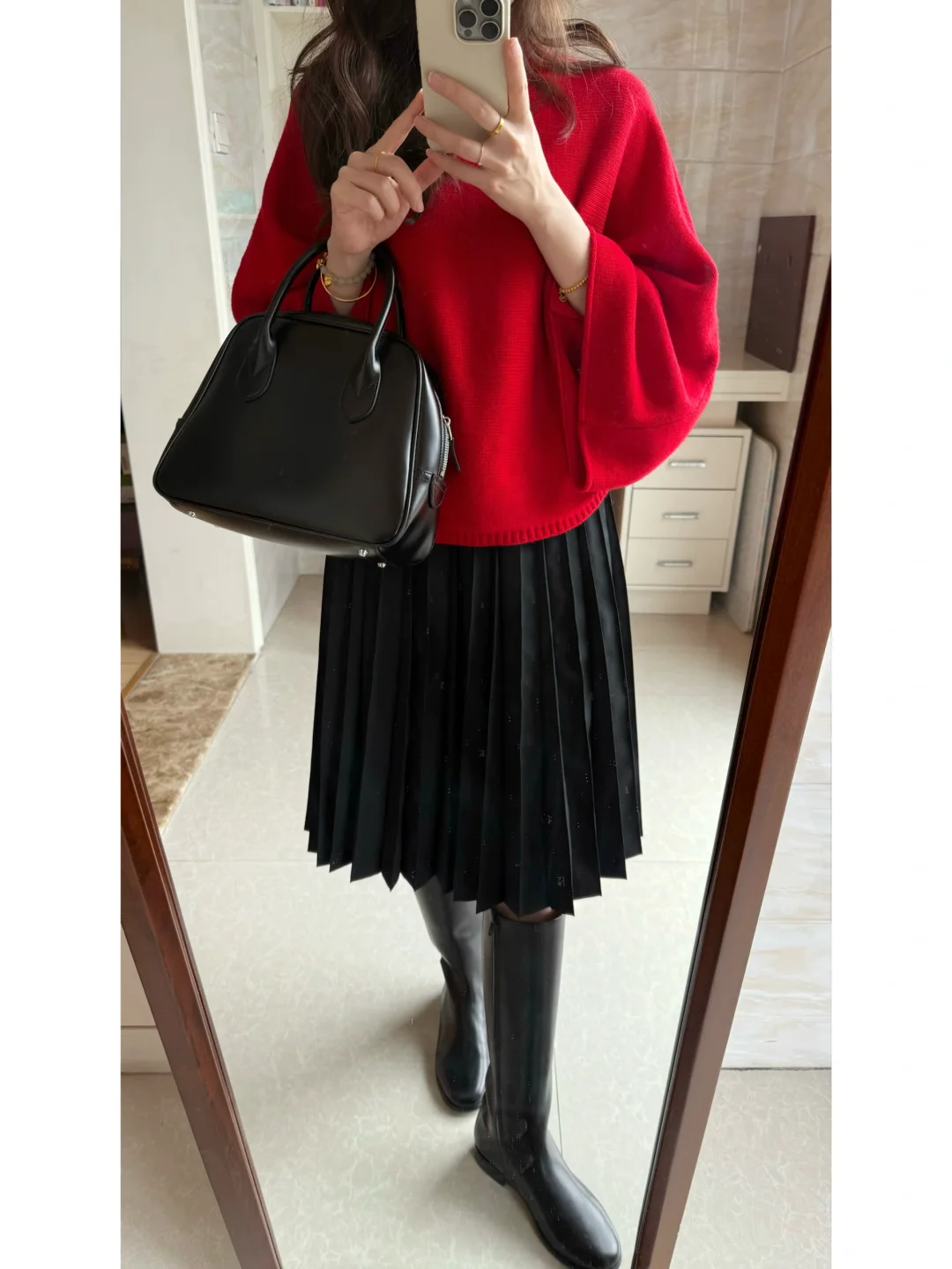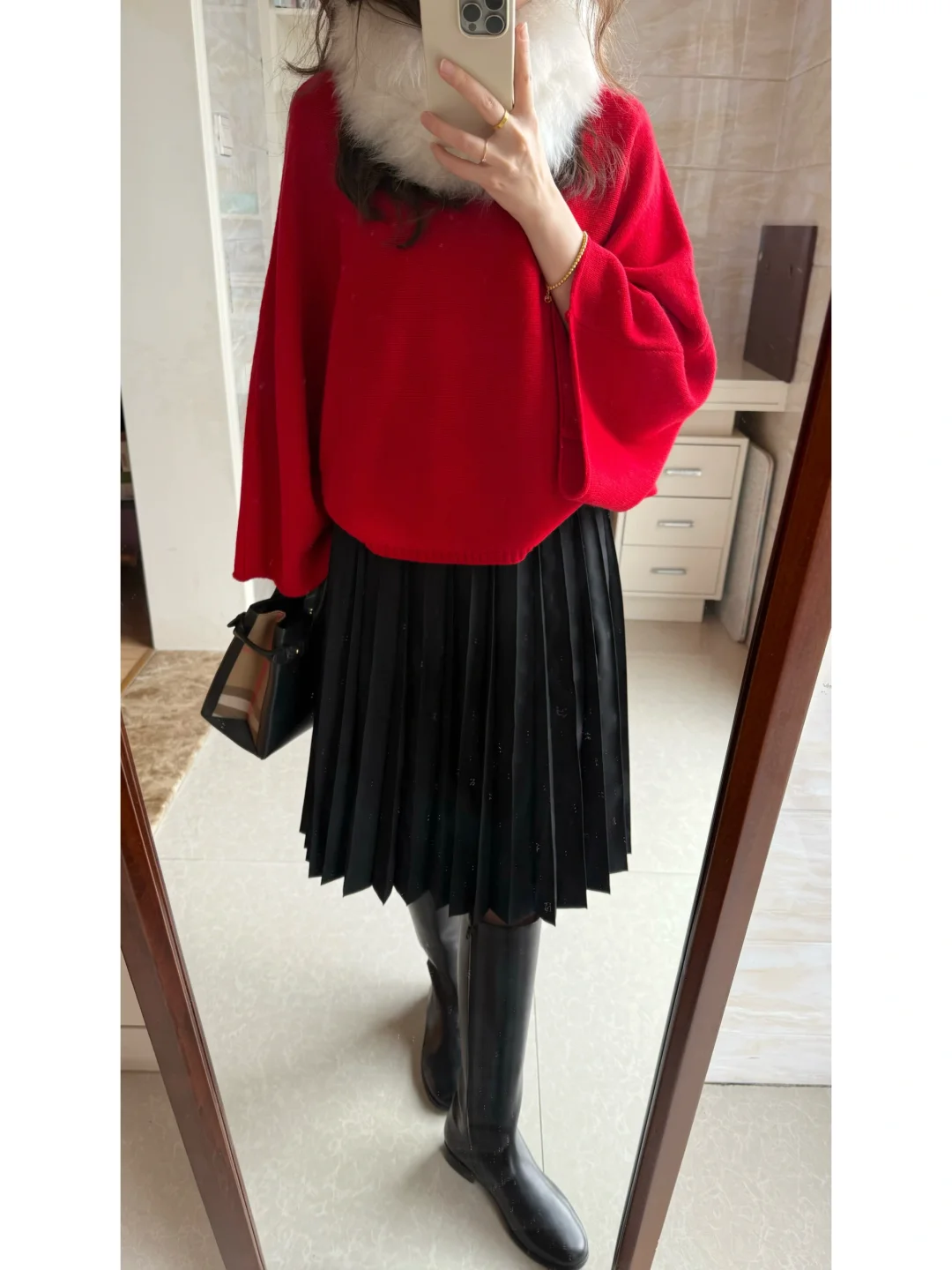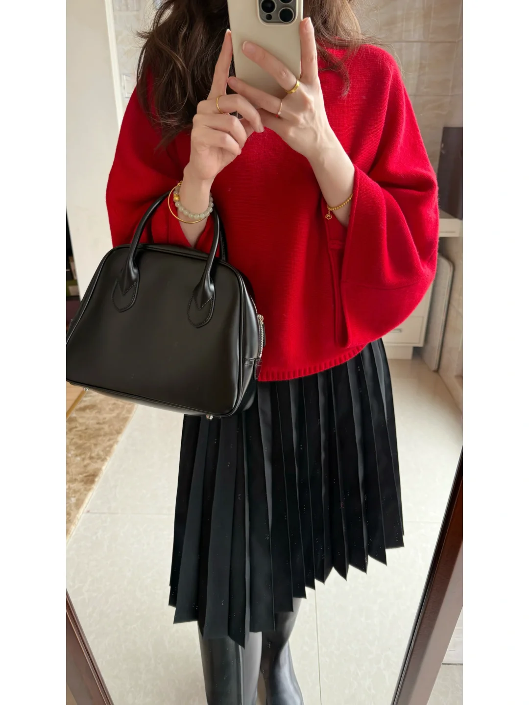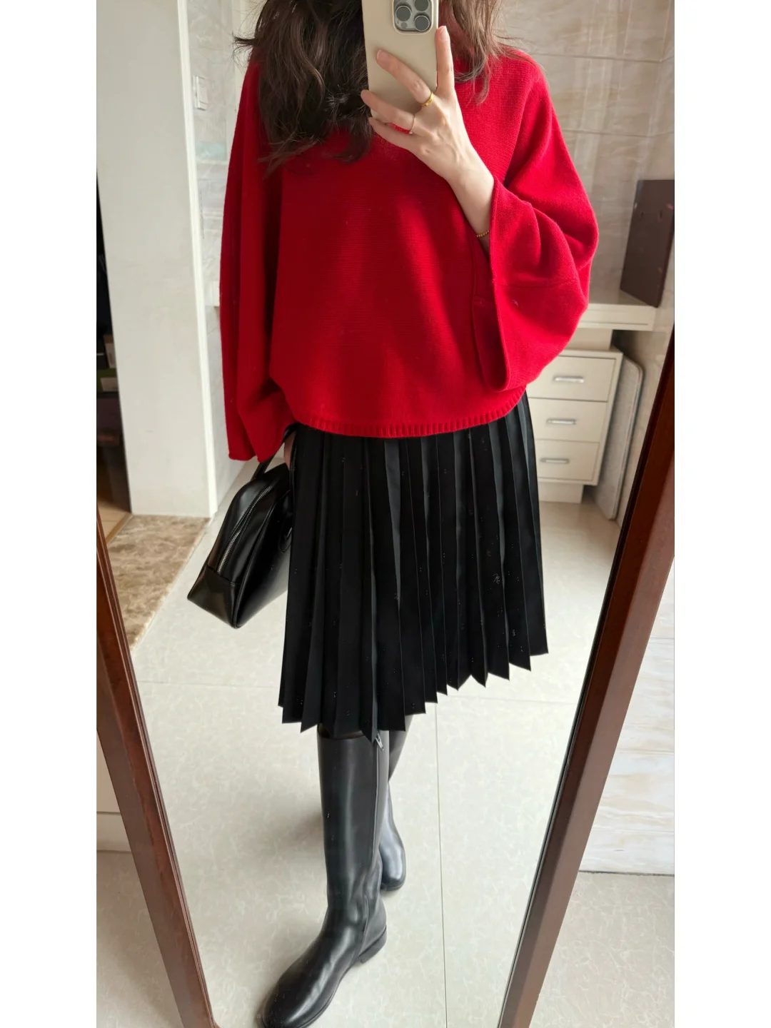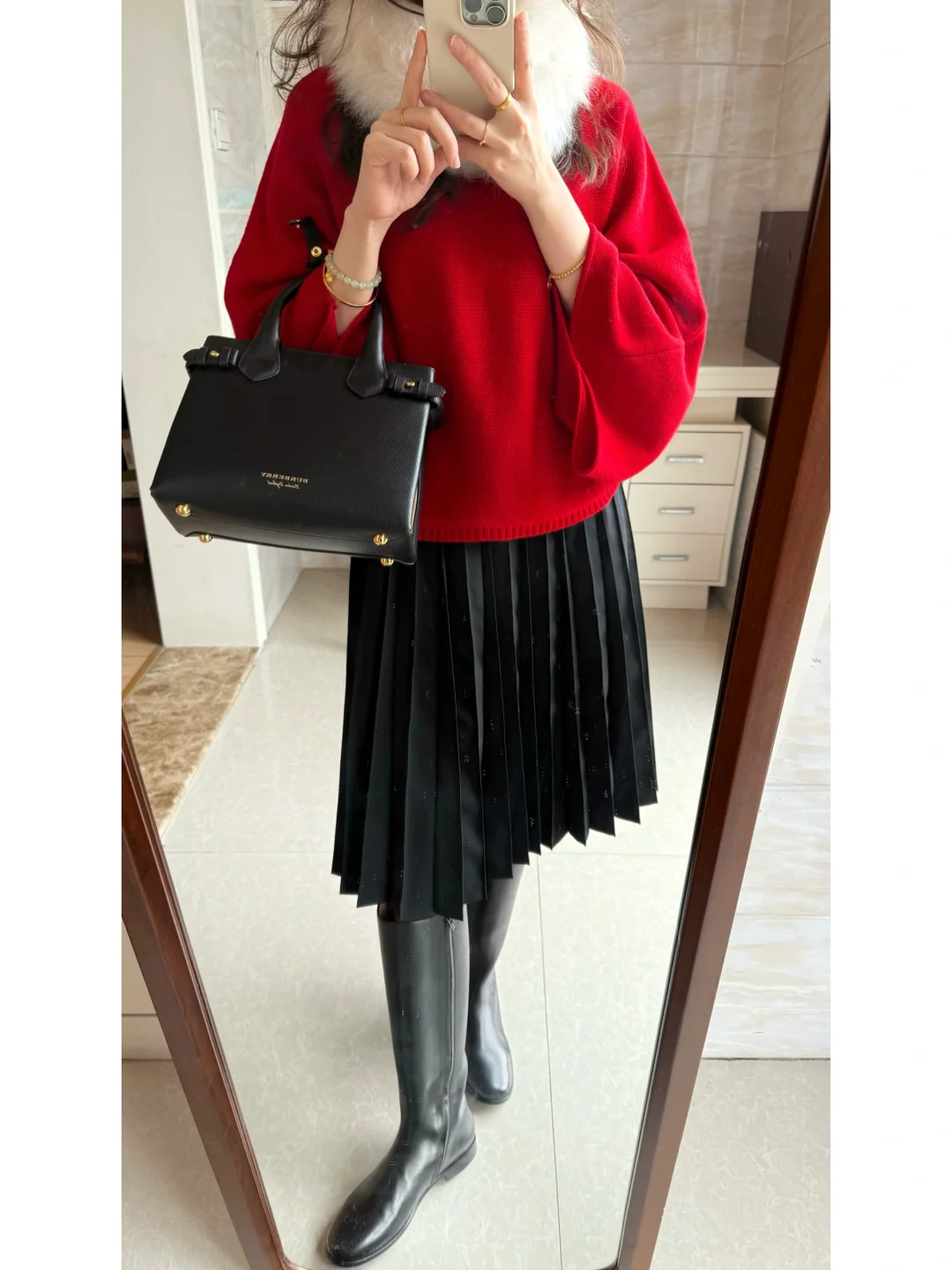 过年穿什么 过年就要穿点红的 新年新look cleanfit简单出门 极简穿搭 红色毛衣 春节穿搭 把年味穿在身上