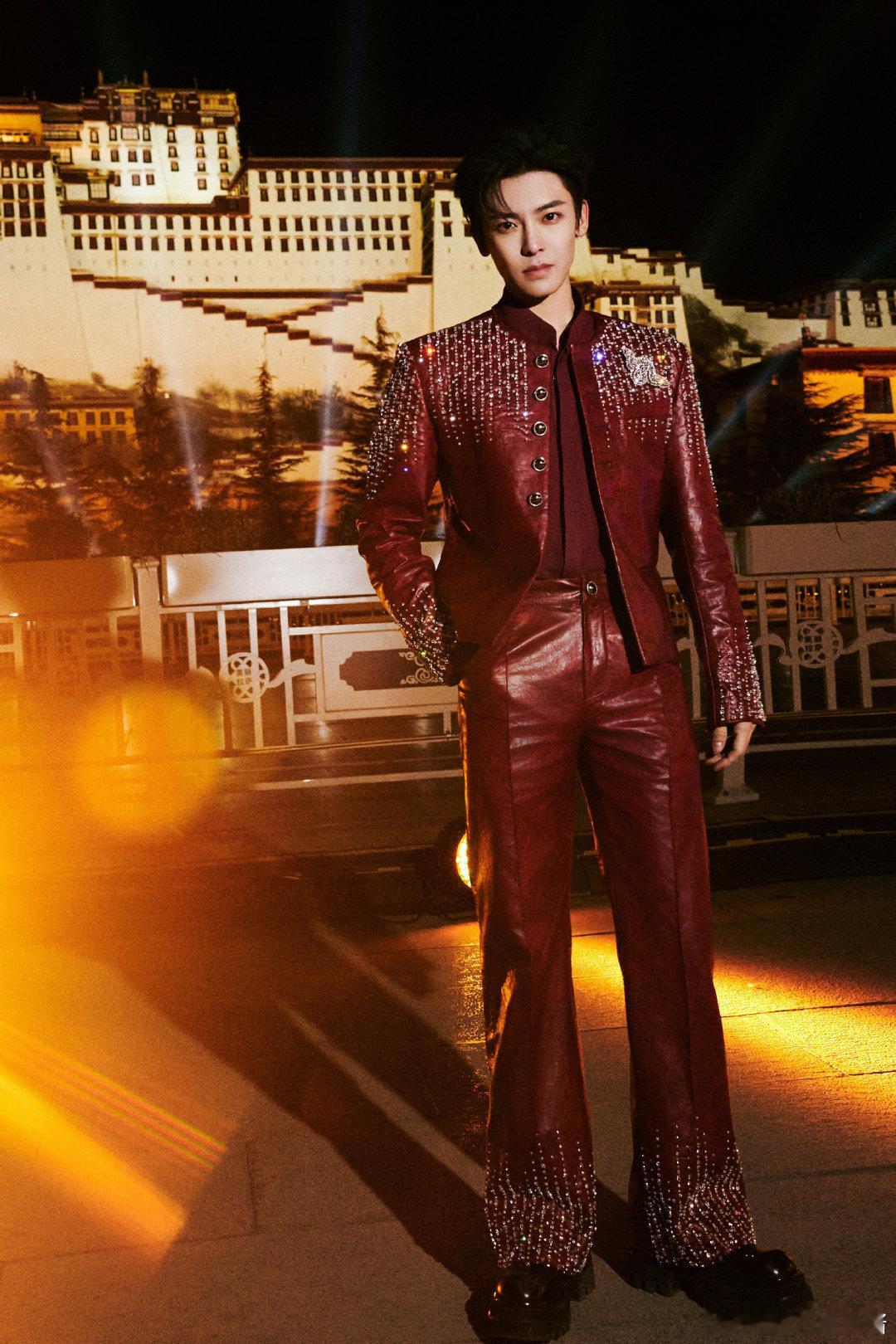 家人们,侯明昊这央视春晚造型直接封神!一身全红满钻皮衣,在布达拉宫前闪到离谱,谁