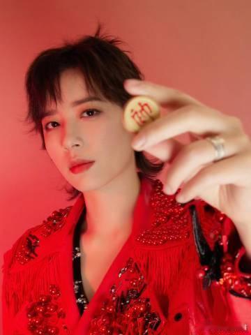 李斯丹妮国风造型 这是什么国风美少年下凡!丸子头干净利落,黑色长裤搭配红色薄纱