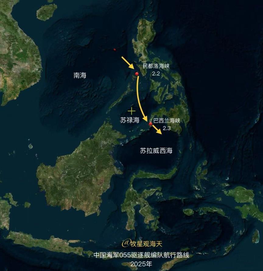 2月3日,据央视报道,南部战区近期组织海空兵力在菲律宾内水进行远海航行演训,期间海上舰艇编队自西向东经过菲律宾内水巴西兰海峡,进入西里伯斯海,随后前往西太平洋海域进行海上演训行动。