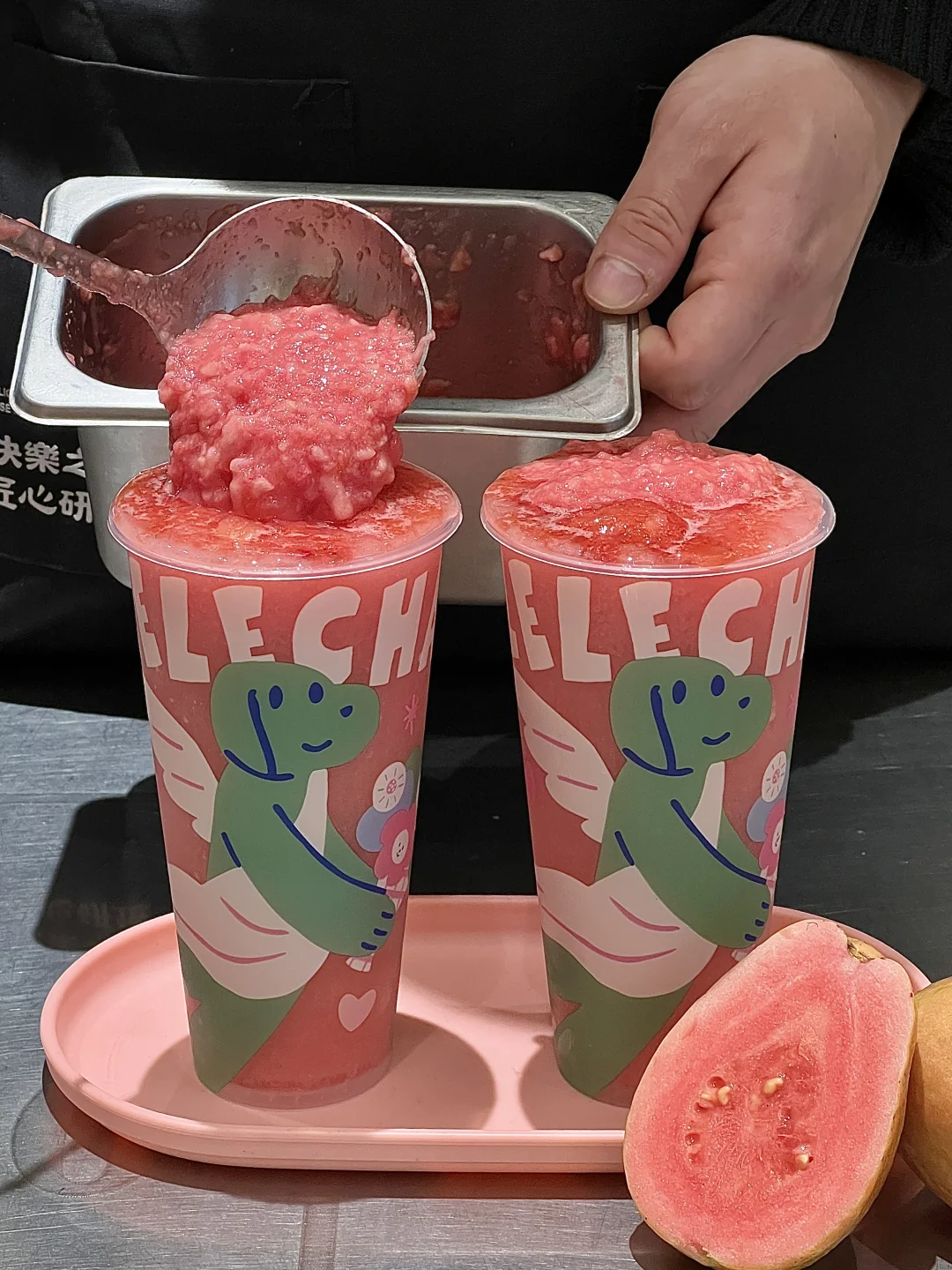 粉嫩嫩的红心芭乐 好适合情人节 好喝又浪漫💖
