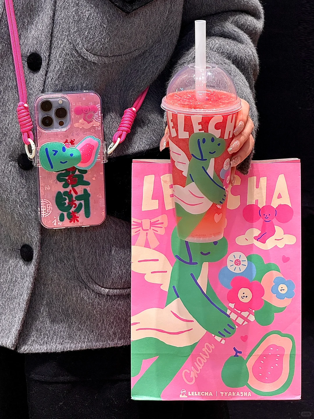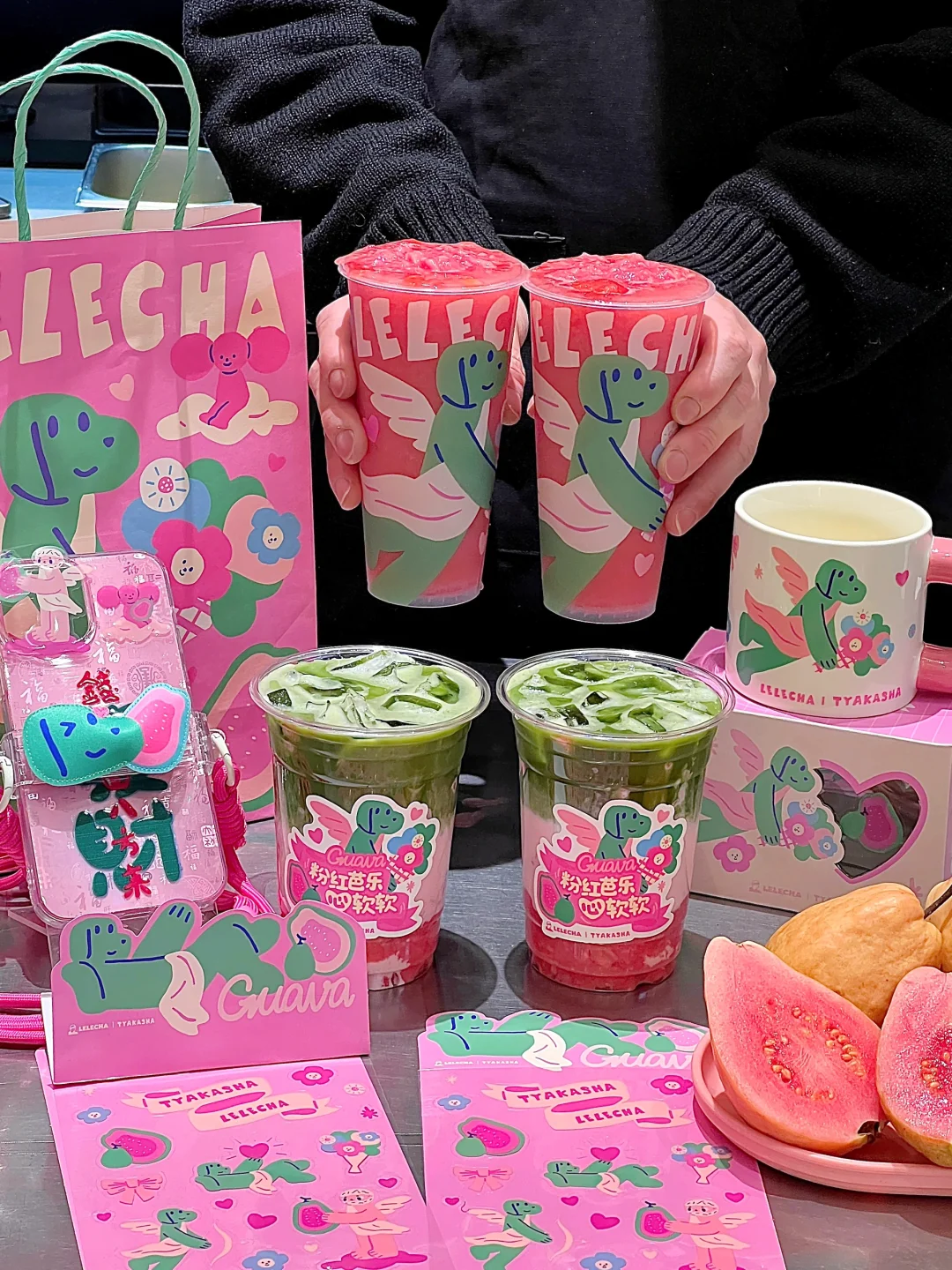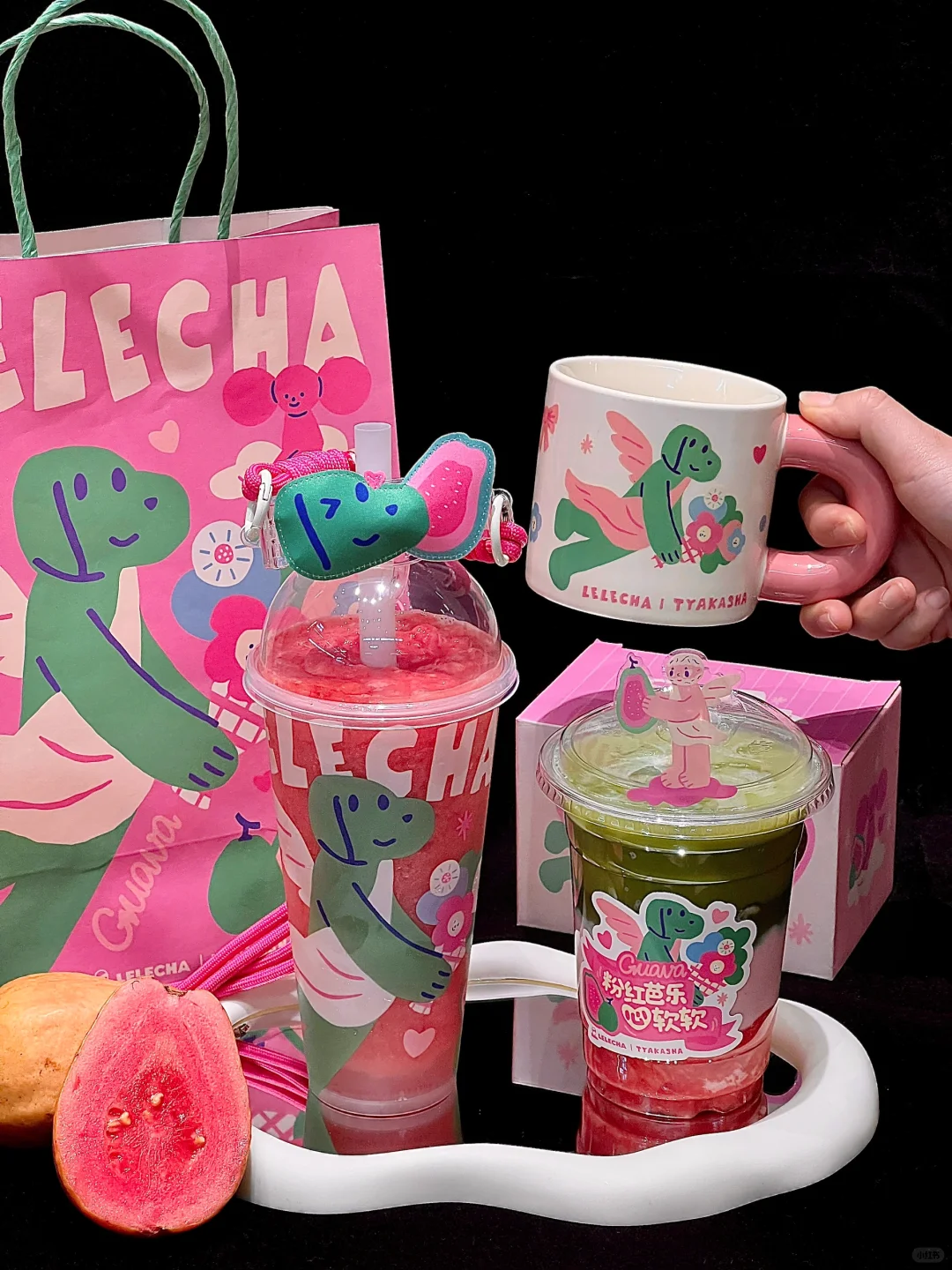 乐乐茶xTYAKASHA🎀情人节粉红芭乐好好喝!!
