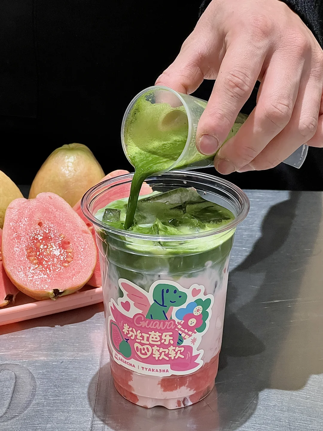 香甜芭乐+低脂椰乳+抹茶液 层次丰富