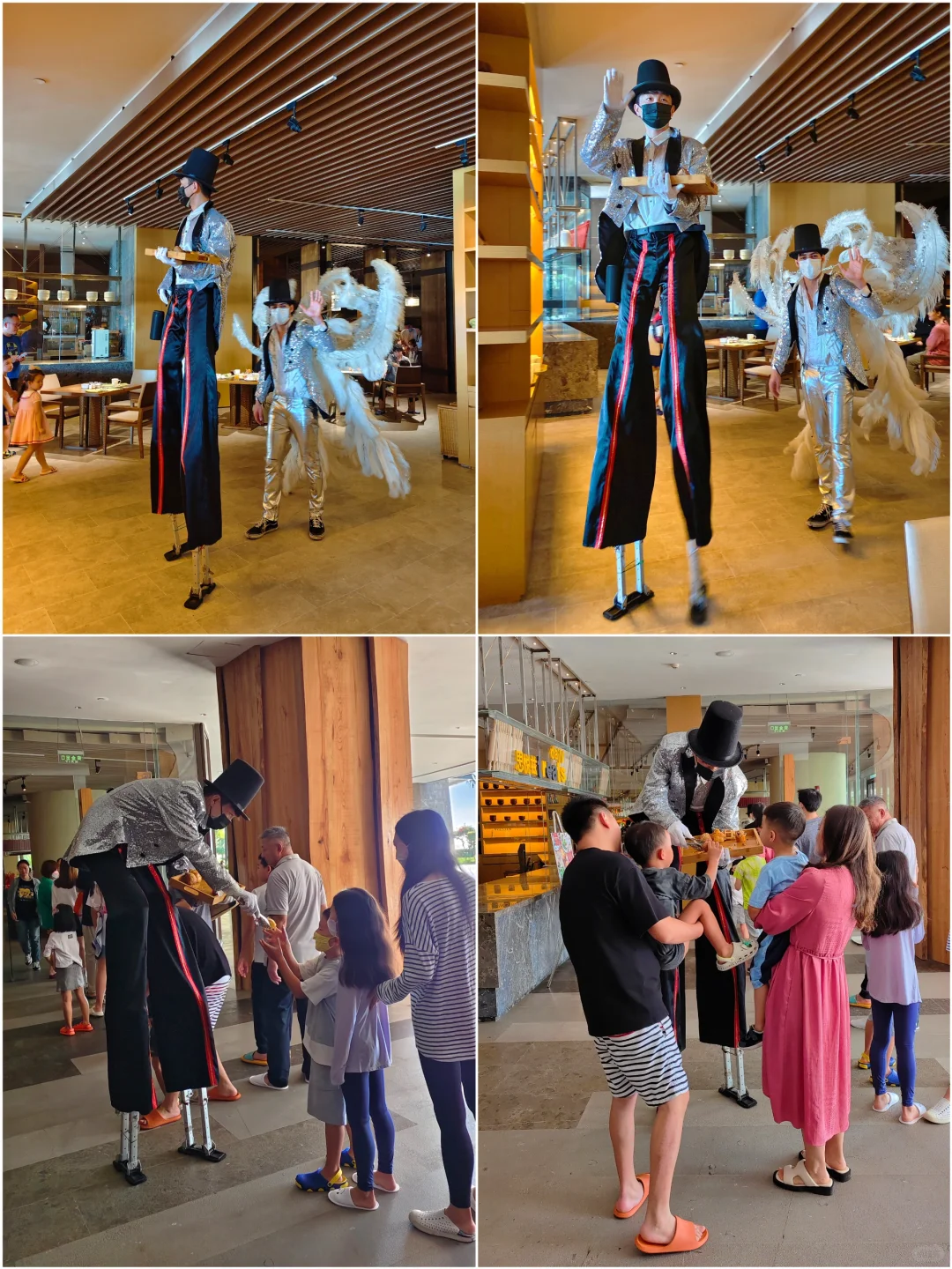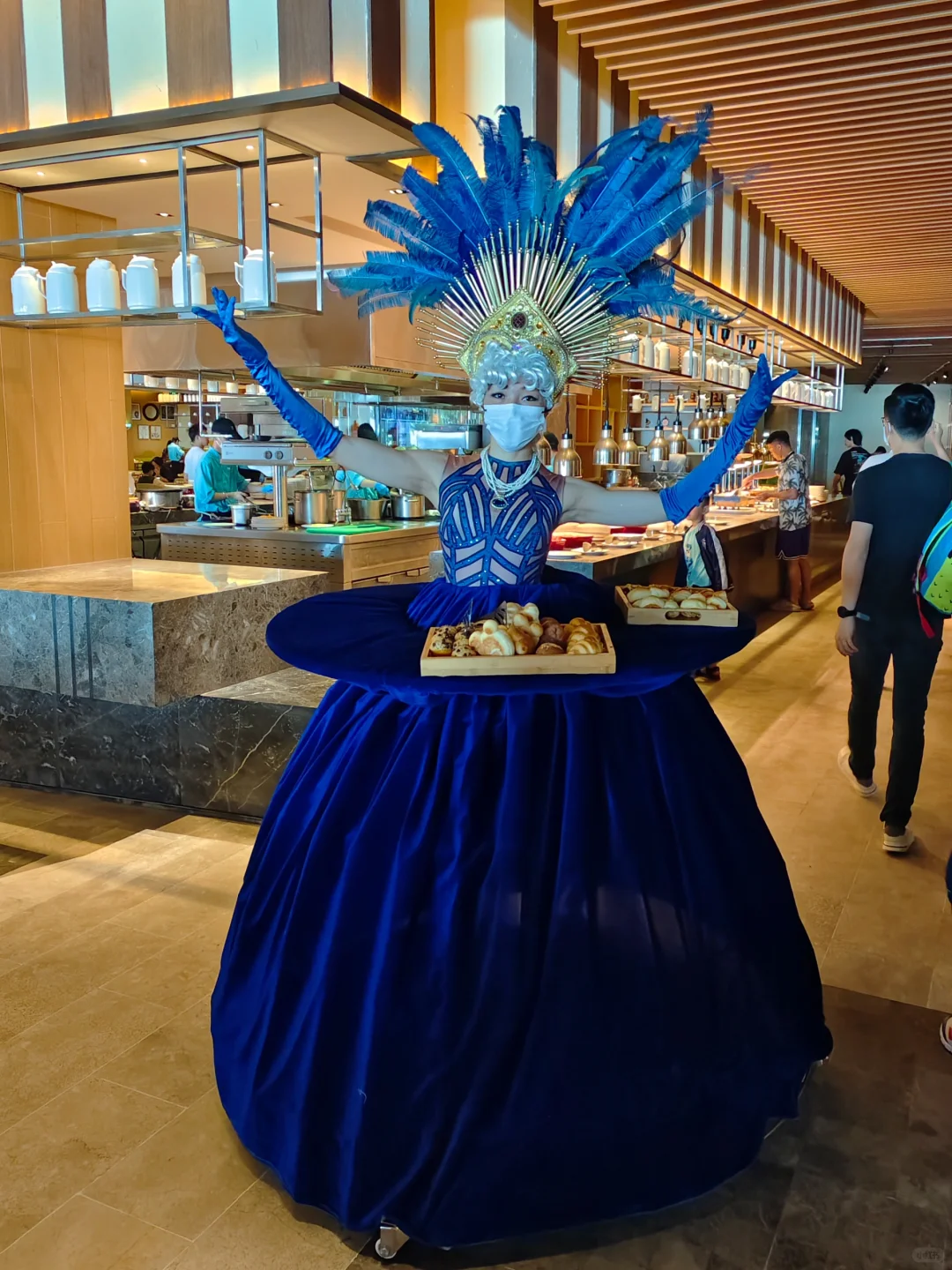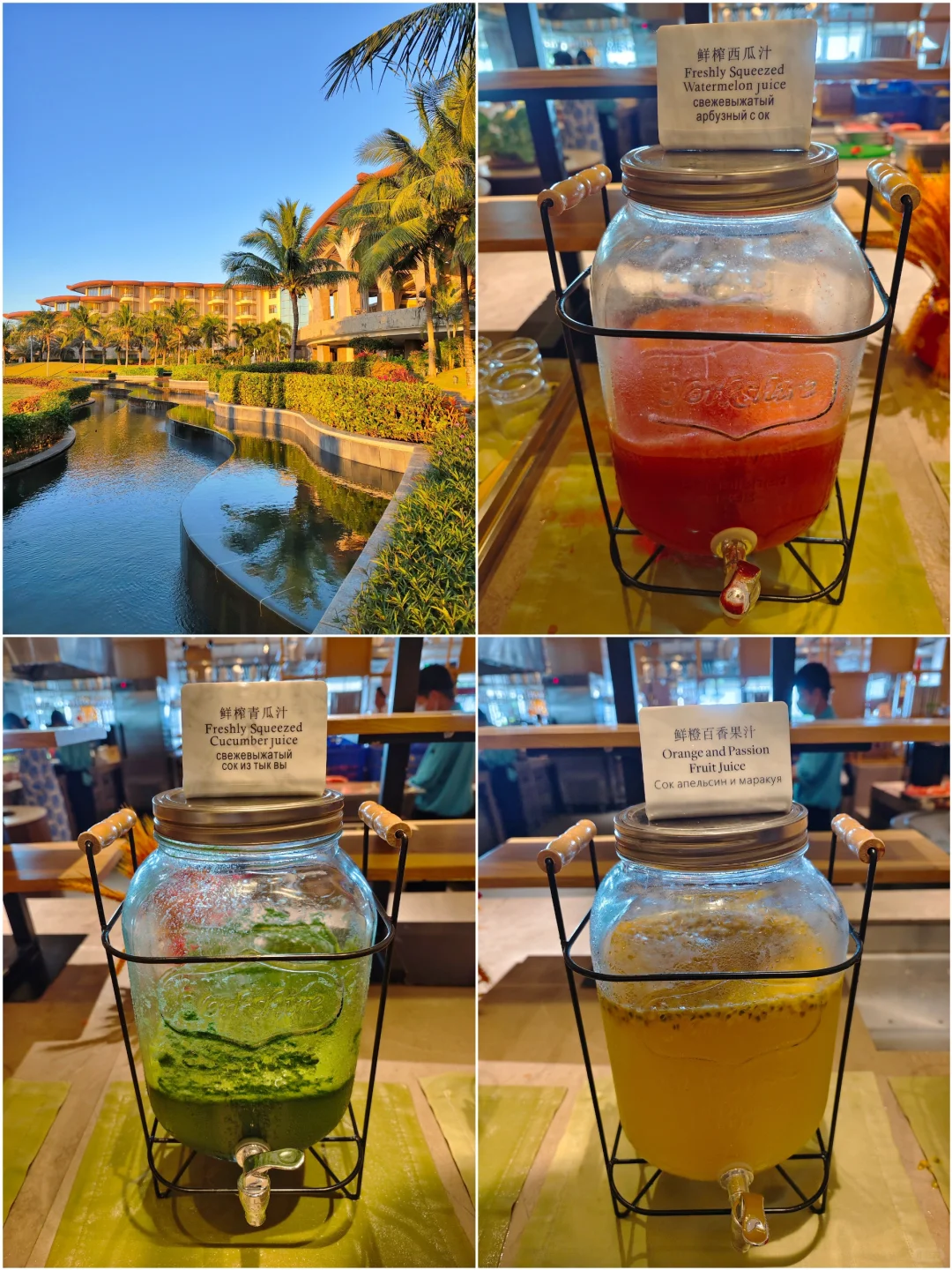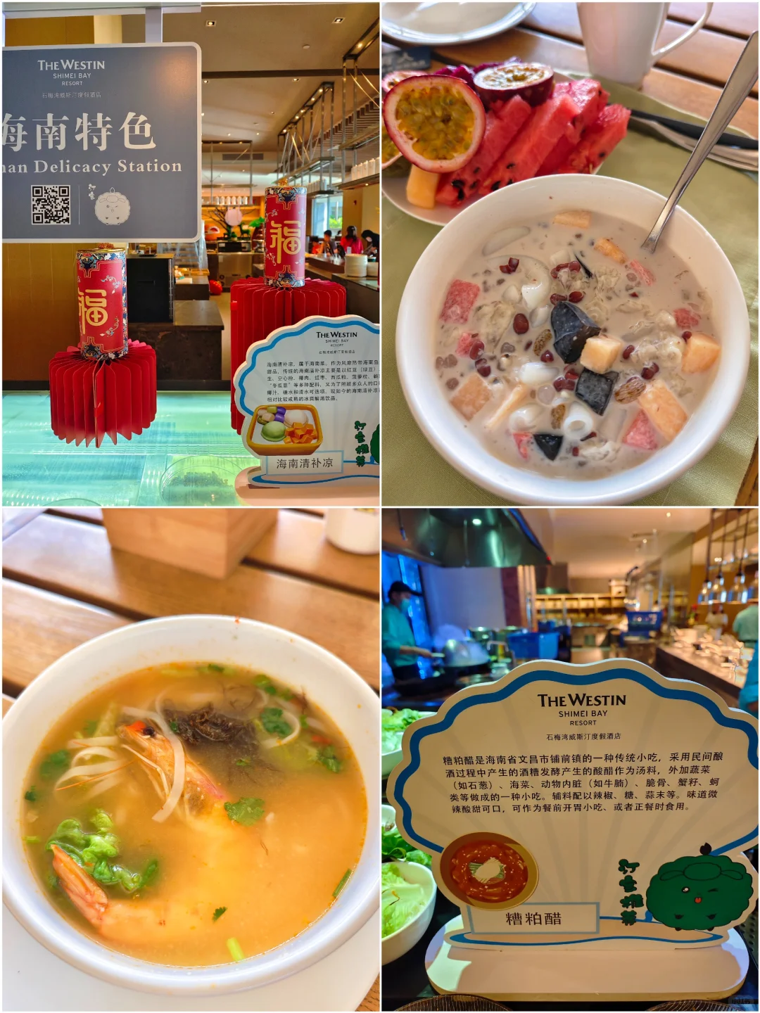 酒店属于度假酒店系列,没有行政酒廊,万豪系在海南除了两家丽思,只有山海天JW有行政酒廊。早餐位于1层知味全日制餐厅,餐厅很大,用餐人数也非常多,有鲜榨果汁,也有清补凉和糟粕醋等海南特色。用餐排队时,有员工会踩着高跷分发食品,还是挺有趣的。(P10~P14)。