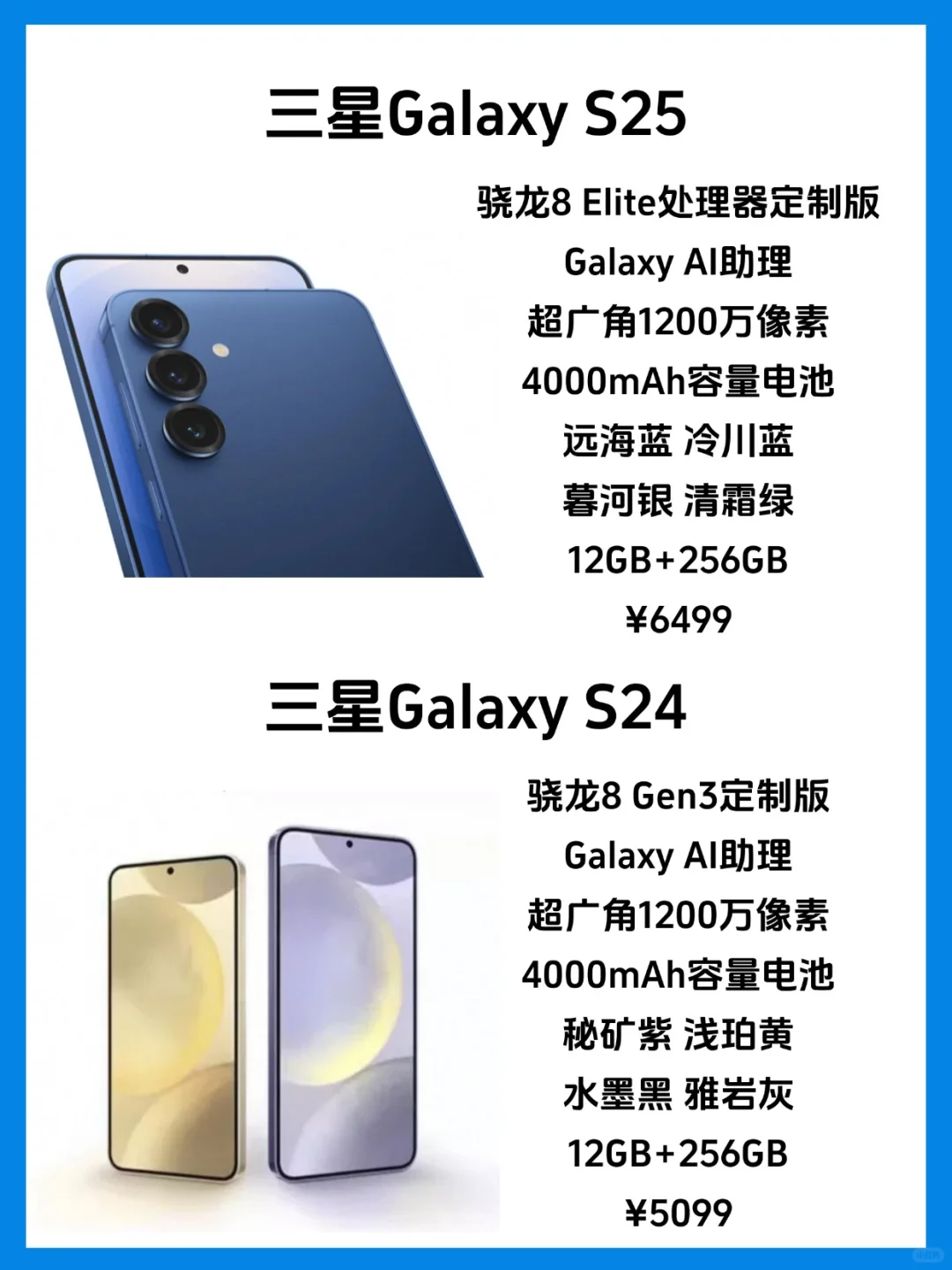 一张图看懂三星S24系列和S25系列✅