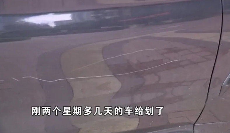 他气的不轻,以为是被其他车不小心蹭的,可仔细一看,发现不但有5条划痕,而且明显是人为的。
