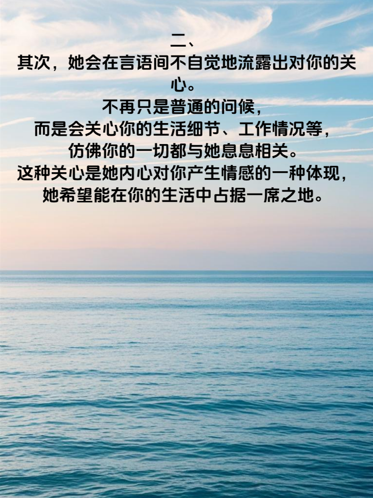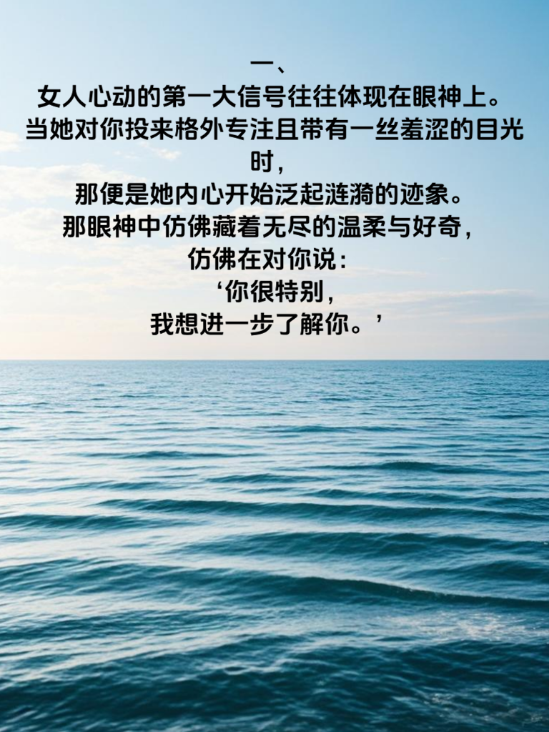 一、女人心动的第一大信号往往体现在眼神上。当她对你投来格外专注且带有一丝羞涩的目光时,那便是她内心开始泛起涟漪的迹象。那眼神中仿佛藏着无尽的温柔与好奇,仿佛在对你说:‘你很特别,我想进一步了解你。 二、其次,她会在言语间不自觉地流露出对你的关心。不再只是普通的问候,而是会关心你的生活细节、工作情况等,仿佛你的一切都与她息息相关。这种关心是她内心对你产生情感的一种体现,她希望能在你的生活中占据一席之地。 三、再者,女人心动时会变得格外在意自己在你面前的形象。她会精心打扮自己,选择更适合与你相处的服装和发型,希望能给你留下最好的印象。这是她潜意识里想要吸引你的表现,她希望你能注意到她的变化,感受到她对你的情感。总之,当你察觉到女人有这些信号时,便要抓住机会,勇敢地向她表达你的心意,开启一段美好的情感之旅。
