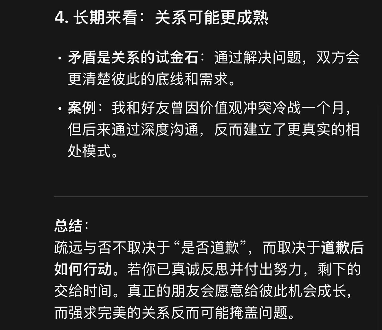 跟朋友闹了矛盾,道歉后,会变得生疏吗?看deepseek回答