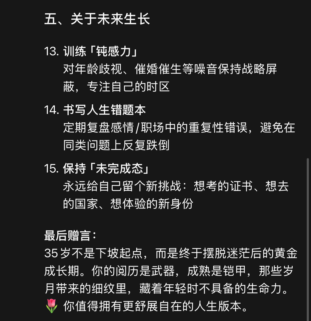 DeepSeek 分享给35岁+女性的15条人生建议: