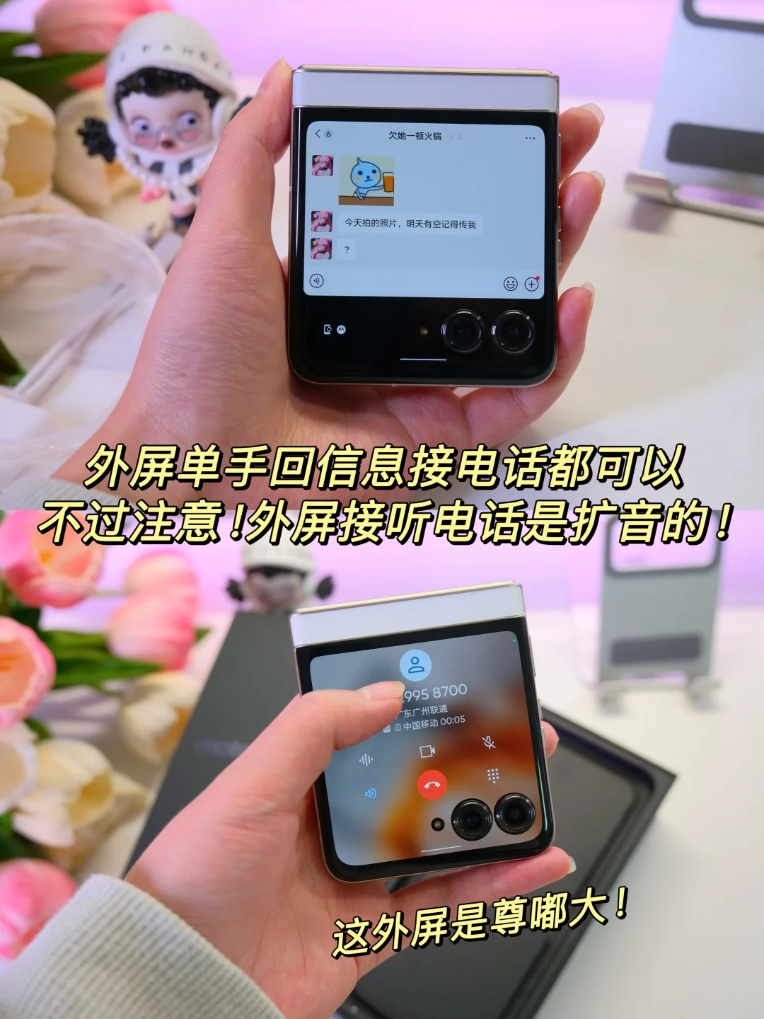 外屏可以回消息接电话,📢不过外屏接电话是扩音的,👂内屏接电话是默认听筒!