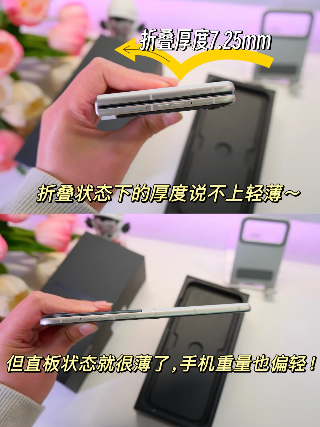 直板状态下的折叠处正面无痕,侧面微痕,追剧阅读无影响(侧面完全无痕的目前没见过),折叠脚链用的是第五代星轨转轴,每次打开或者折叠,手感都很顺滑!官方说是可60万次折叠的噢!