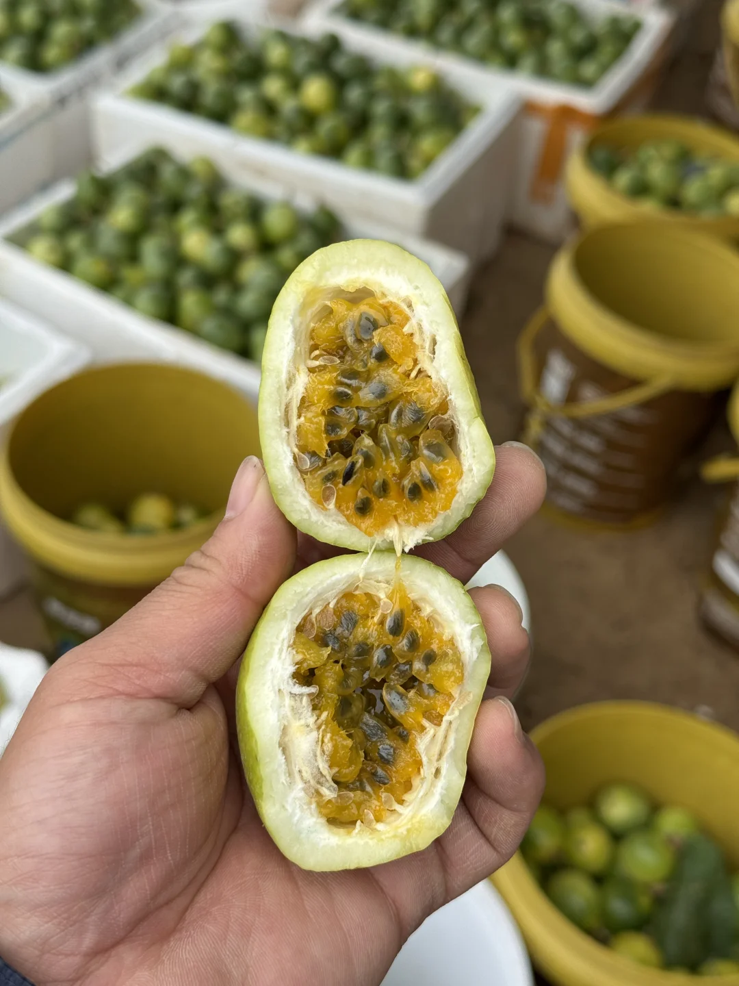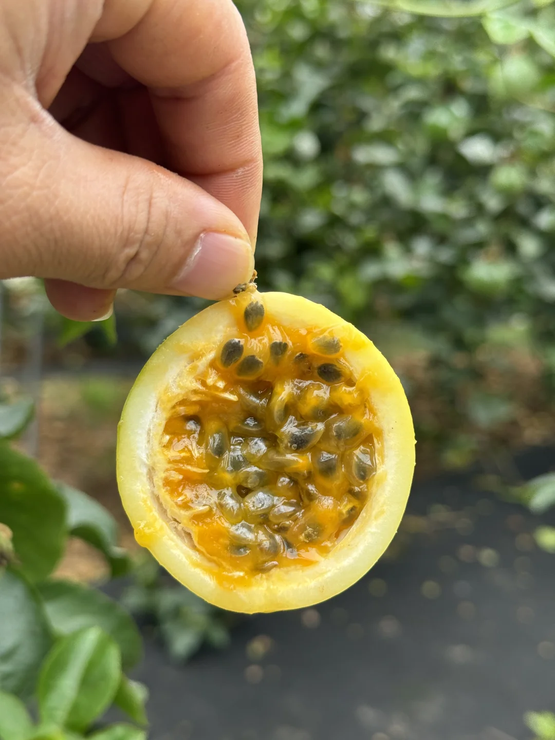 每天都收到很多老顾客私信 你们家百香果什么时候有 买了真的实在太好吃了, 在别家买不到这种风味的百香果 由于口感达不到我们的要求 所以拖了很久才上架 现在的口感虽然达不到像夏天那样纯甜 也是有九甜一酸的,吃起来风味也很浓。