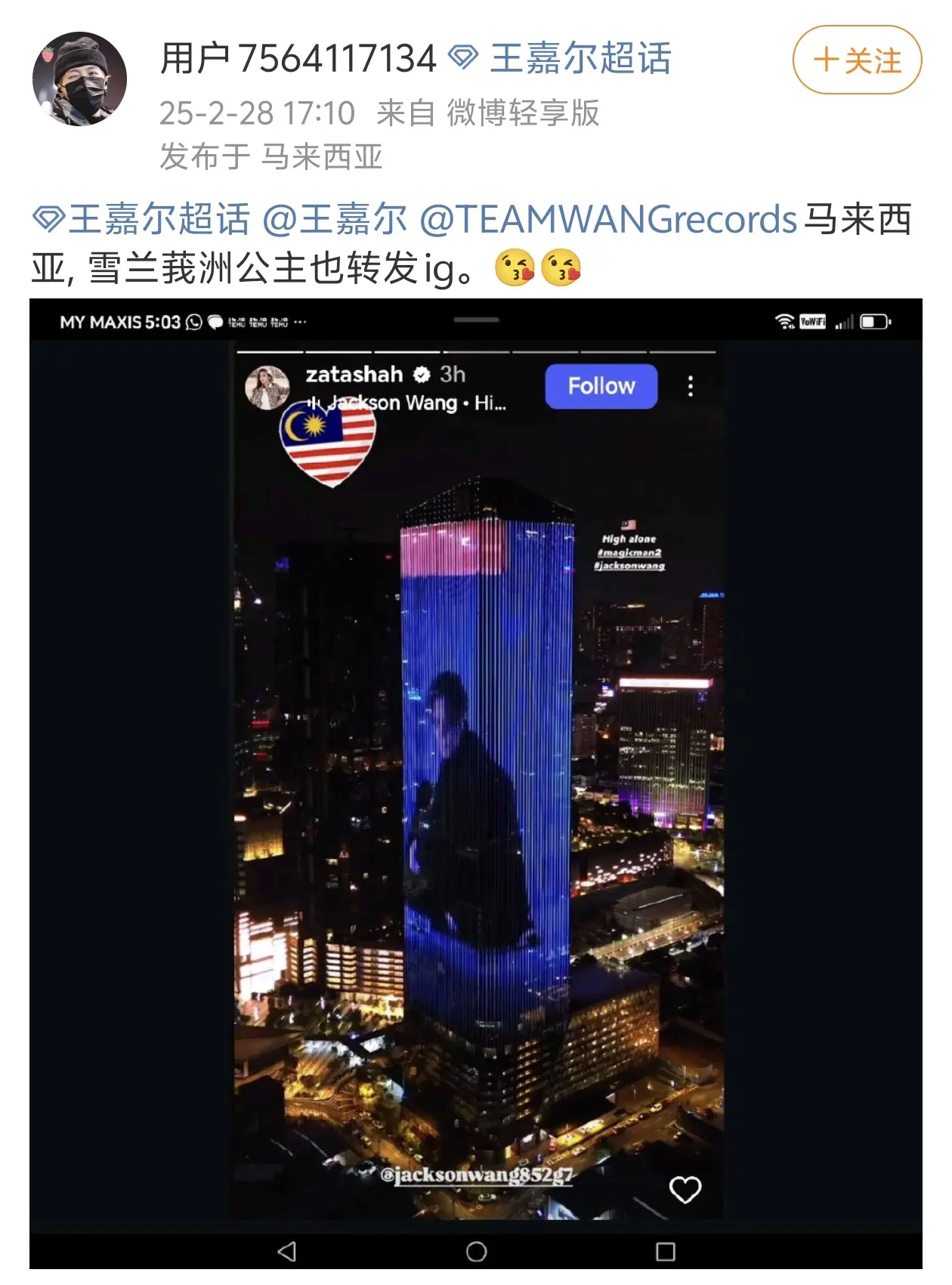 马来西亚雪兰莪洲公主ig转发大屏😎。