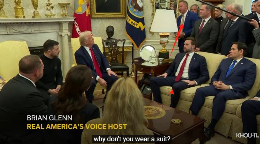 在白宫当面质问乌克兰总统泽连斯基不穿西装的男子是谁?