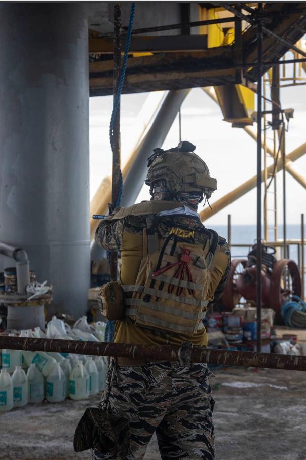 几天前,在仁爱礁上非法坐滩的菲军舰刚冒过黑烟;5日,菲方又向仁爱礁运送了一次补给,并进行了人员轮换。看来,最近菲方在仁爱礁一直动作不断。而不久前,有专家提出了一个观点,即在仁爱礁非法坐滩的军舰已经不属于军舰了,而是一种非法军事平台。这样一来,美菲演练夺取海上平台似乎就更说的通了——他们或许是在担心,解放军有一天会突然动手,夺下那艘非法坐滩军舰的控制权,而他们则需要反夺回军舰,所以才开始进行训练。