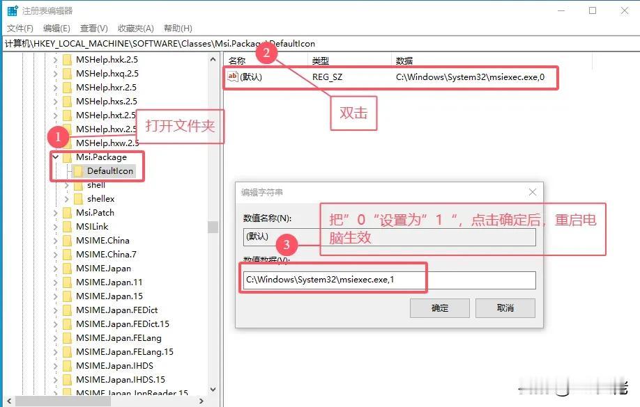 怎么禁止电脑安装软件1、按【Win+R】 键,在运行窗口内输入“regedit”后【确定】。 2、在弹出的窗口内依次打开“ HKEY_LOCAL _MACHINE ”文件夹,“ SOFTWARE ”文件夹,“ Classes ”文件夹。 3、在Classes文件夹中找到“ Msi.Package Defaultlcon ”文件夹后,选择“ Defaultlcon ”后,双击右侧文件。 4、在【编辑字串符】窗口内的“ 0 “改为 ”1 “后【确定】,重启电脑生效。命令提示服务
