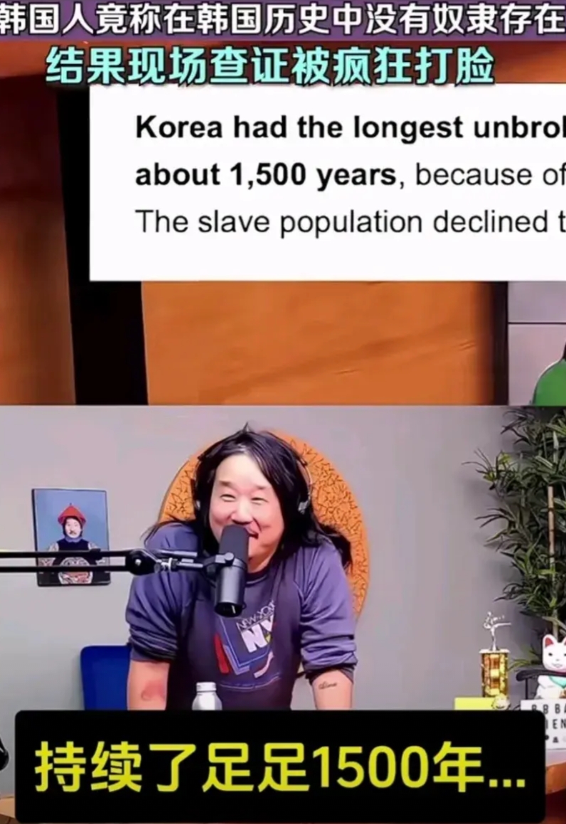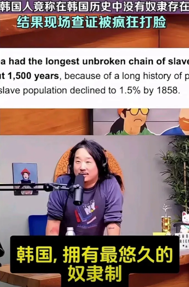 “韩国不存在奴隶历史”被当场疯狂打脸。一位韩国人在国外的一档节目中,颇为自豪地宣称韩国没有奴隶历史,主持人和另一位嘉宾都对此强烈质疑,当即查询,答案直接让人笑破大牙,原来韩国不但有,而且是拥有最悠久的奴隶制,是人类历史之最,持续足足1500年。