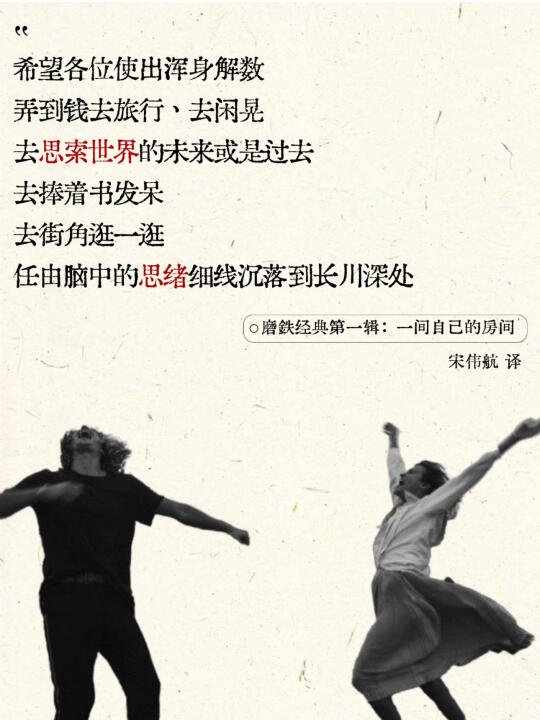 “希望各位使出浑身解数弄到钱去旅行、去闲晃、去思索世界的未来或是过去,去捧着书发呆,去街角逛一逛,任由脑中的思绪细线沉落到长川深处。”