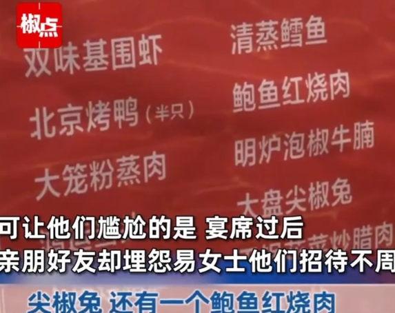 “惹众怒了?”重庆,女子在某酒店订了6桌酒席,给孩子办百日宴,菜品有基围虾、鸿运当头、鲍鱼、北京烤鸭等等,没想到,女子亲戚觉得菜品太差,直接拍桌子:“吃了这么多年席,没见过这么差的!”事发后,女子很委屈,认为自己丢了面子,希望获得赔偿。可网友在得知酒席价格后,纷纷站到酒店这边。 (来源:椒点视频) 易某住重庆某县,在某个公司上班。 她怎么也没想到,好好的一个百日宴,竟然会让她成为大家口中的笑柄。 易某和丈夫张某的孩子出生后,一家人将其视为珍宝,为了答谢亲朋好友,易某安排了周六这天,在某家装修得不错的酒店给孩子过百日宴。 万万没想到,百日宴还没结束,易某心里就委屈得不行,明明提前考察了酒楼,订了6桌,鱼虾海鲜一应俱全,想让大家吃好喝好,结果却事与愿违。 易某表示,她订的套餐里面有基围虾、鸿运当头、尖椒兔、鲍鱼、北京烤鸭等,12点15分准时开席,可酒店却是凉菜、小吃先上桌,压轴的主菜基围虾、鸿运当头,迟迟不见踪影。 等到不少客人吃饱准备离席了,接近中午1点了,这些主菜才姗姗来迟。 易某的二姨爹是个急性子,他送了几百块的礼金,看到这样一桌菜,没能忍住,拍了桌子,“吃了这么多年席,没见过你这么上菜的!” 易某和其他客人都明白,二姨爹的话给易某留了面子,他是看到菜品这么差,认为易某掉钱眼里了,竟然这么招待客人。 见二姨爹发火,易某脸上有些挂不住,赶紧找酒楼理论。 事发后,酒店解释说,易某原本定的上菜时间是11点45分,后来临时改到了12点30分,正常情况下,他们会在20分钟内全部上齐。 但当天因为酒席太多,厨房忙不过来,不小心把几个重要的菜放在了最后。 易某不听这些,好好的一顿百日宴,亲朋好友都觉得她们小气寒酸,是酒店导致她丢了面子。 最后,酒楼方面提出免掉800元费用作为补偿,易某勉强接受。 据了解,易某预定的酒席700元一桌。 易某说的面子,是社会对其个人的评价,属于名誉权的范畴,酒店因为当天酒席太多,忙不过来,主菜最后上,有侵犯易某的名誉权吗? 民法典第1024条规定,任何组织或者个人不得以侮辱、诽谤等方式侵害他人的名誉权。 从易某的陈述来看,酒店不存在侮辱、诽谤等方式侵害他的名誉权,但酒店存在履行合同有瑕疵的情况。 因为正常来说,不管客人点多少道菜,一般都是荤菜全部先上齐了,到最后上一盘青菜,预示着菜品到这就全部上完了。 《民法典》第五百八十二条,履行不符合约定的,应当按照当事人的约定承担违约责任。对违约责任没有约定或者约定不明确,依据本法第五百一十条的规定仍不能确定的,受损害方根据标的的性质以及损失的大小,可以合理选择请求对方承担修理、重作、更换、退货、减少价款或者报酬等违约责任。 酒店提出免掉易某800元的酒席费用,是对履行不符合约定,承担违约责任,而不是其他。 对此,有网友说,“除了结婚和亡亲的红白喜事宴,什么满月酒、升学宴、乔迁席、参军酒等等,应该移风易俗了!” 还有网友说,“这亲戚以后也不用来往了,就算菜不行,也不至于当场翻脸,不给主家面了。” 也有网友说,“我也给孩子办了满月酒,4千多一桌,不包括酒和烟、帝王蟹龙虾海参、牛排羊排。客人都满意点赞,700元一桌,我不知道怎么好意思提面子。” 您怎么看?