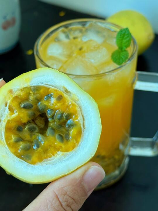 有到了喝百香果补充维C的季节了 爱美的宝子们一天两个,越喝越美 各大明星 模特 网红的必备水果 九甜一酸的口感,风味特浓郁 它富含满满的维C,超好吃 还可以搭配蜂蜜和柠檬 做成一杯好喝的网红百香果柠檬茶!