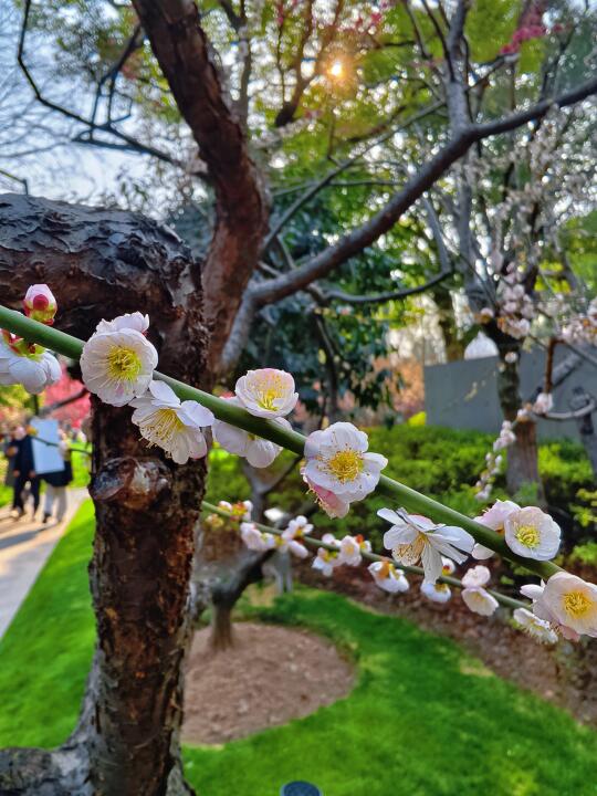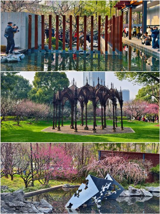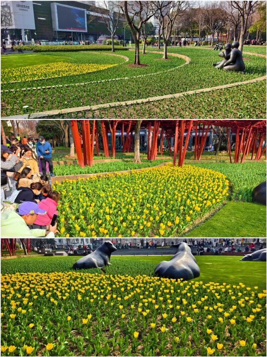 🔥上海静安雕塑公园的梅园号称“新中式美学顶流”,面积不大,但品种很多,有各种绿梅、白梅、红梅等等,只是大多已进入尾期了。 🔥有个好天气,来看梅花的人,比花还多。 🔥郁金香开了少量黄色的,还没到大片盛开期。