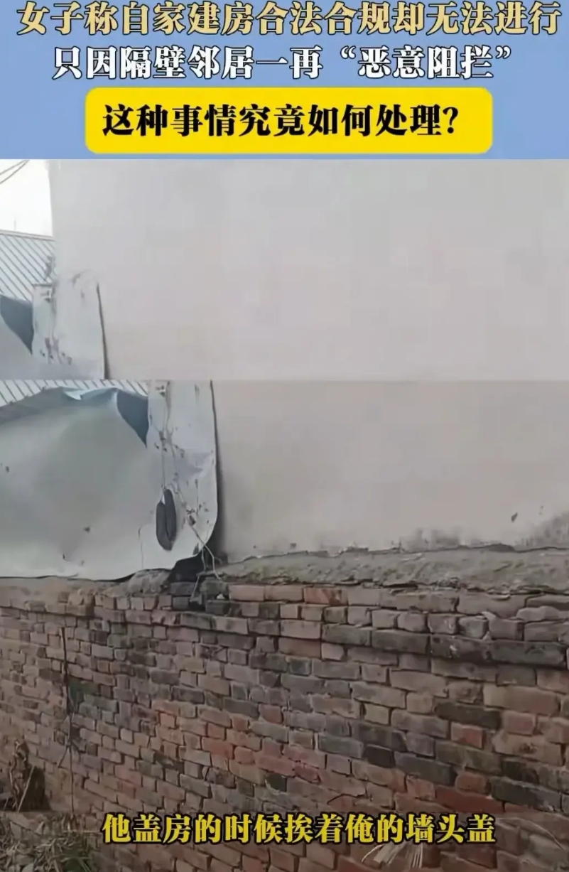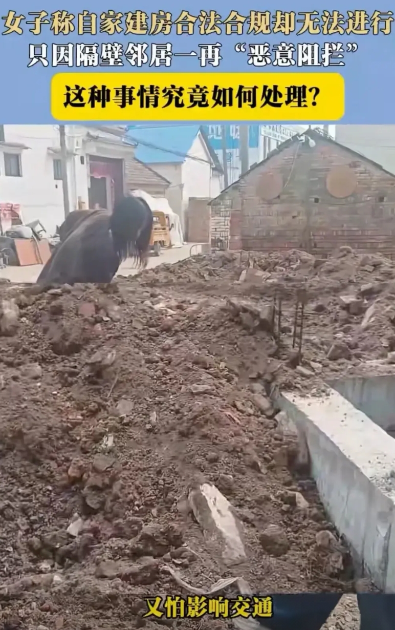 3月12日,根据河南公共频道百姓315的报道,女子说,他们家自建房,合法合规,却因为邻居的恶意阻拦,导致无法进行施工。