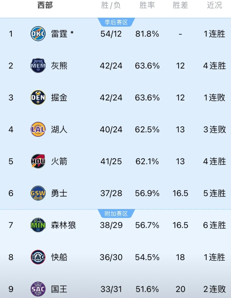 原本西部第2的湖人,在这一波三连败后战绩来到40胜24负,目前被第5的火箭追平,仅靠胜率又是暂列西部第4。而湖人与第6的勇士和第7的森林狼,都有3.5个胜场差。湖人危险了,再输几场就会重新回到附加赛的行列。