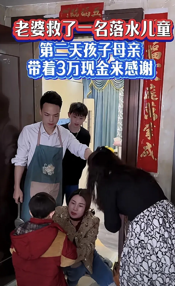 我老婆救了一名落水儿童,第二天孩子家长带了三万块钱来感谢,老婆没收,孩子妈妈带孩