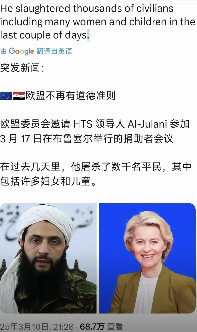 这就是公知们吹捧的文明。 公知们,接着喊啊,别缩回洞里,不吱声了。 公知们之所以高喊大胡子叛军是文明,是因为欧美在背后支持这些大胡子叛军。之前,这些大胡子叛军,早就被联合国和欧美认定为恐怖组织。现在,欧美之所以支持他们,是为了在中东的利益,欧美为了利益,一直在暗中与一些恐怖组织勾结。 公知们的思维,正好是它们自己常挂在嘴边的顺口溜:奴以主子定立场,狗以主人定是非。