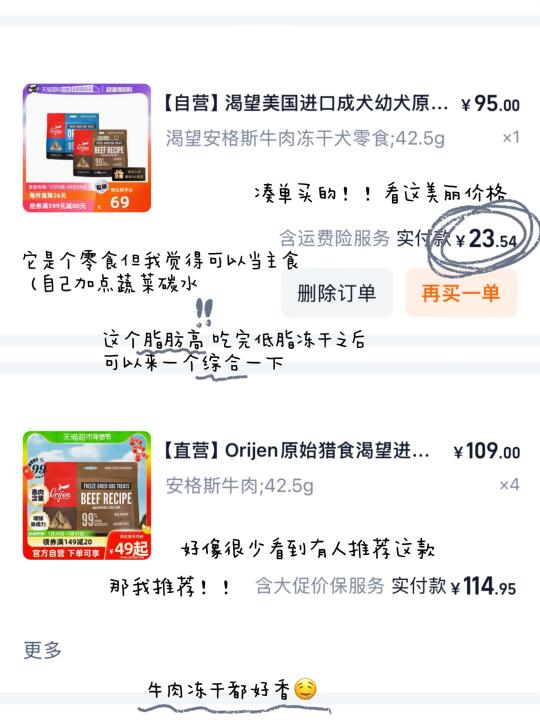 也会选择几款冻干作为基础保障(和我们肠胃磨合的很好 配料都很优秀的 出了啥问题就吃回