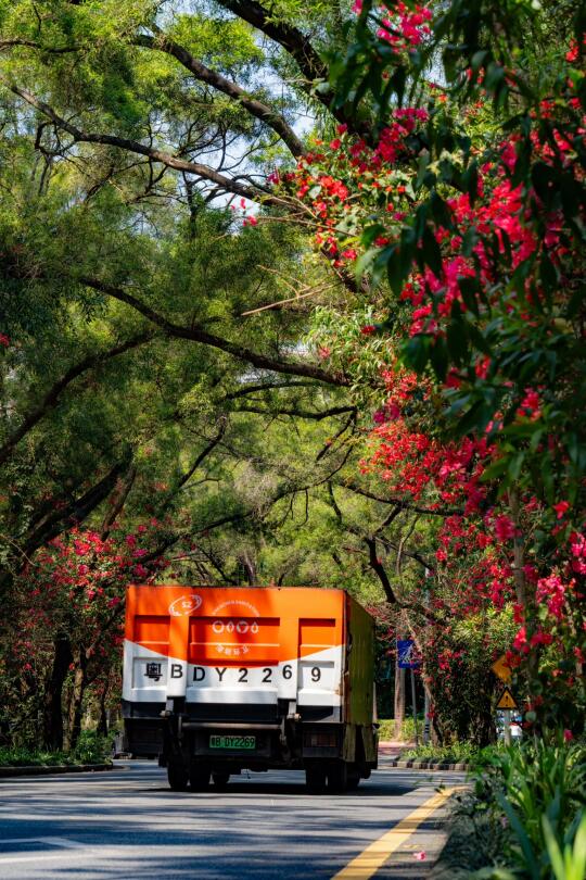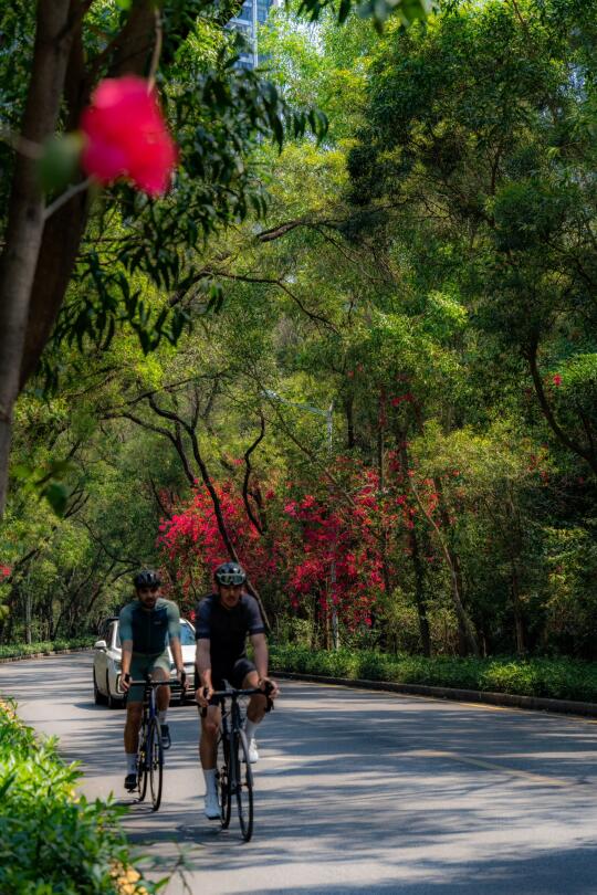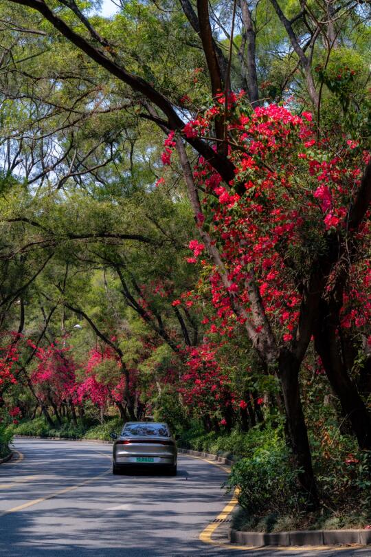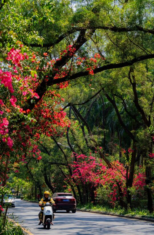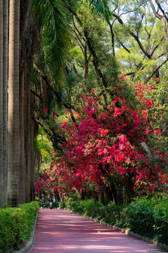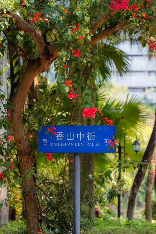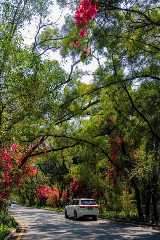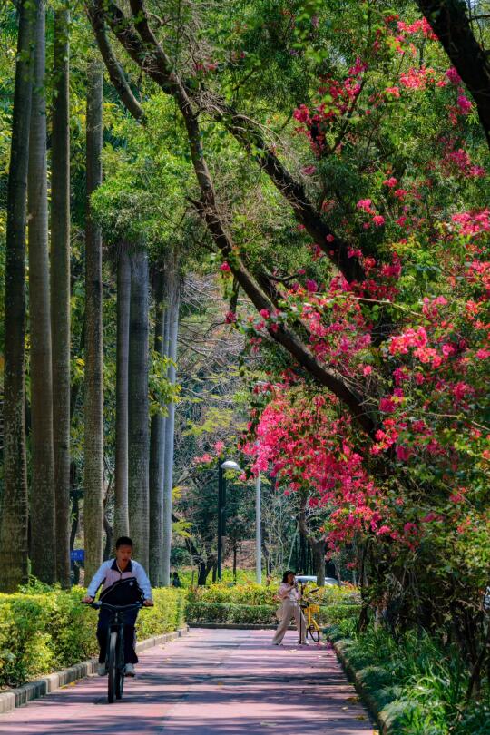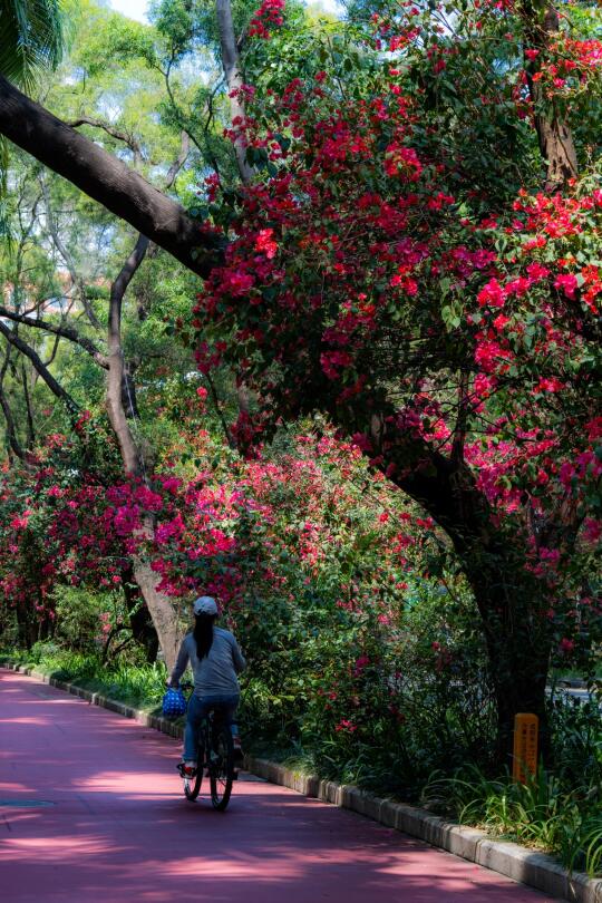 1️⃣从地铁「侨城北」站B口出来后,步行到香山中街即可开始游玩,沿途都是三角梅,步行或者骑单车都可。较为集中的一段是在天鹅堡东公交站。