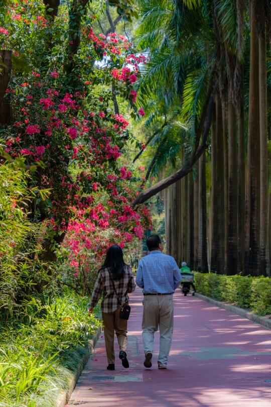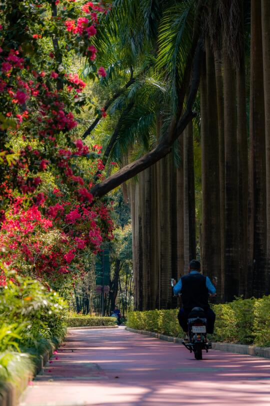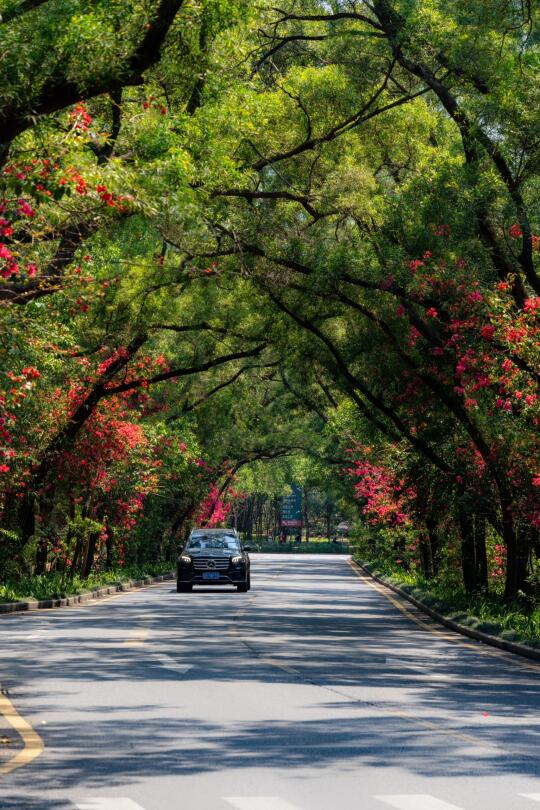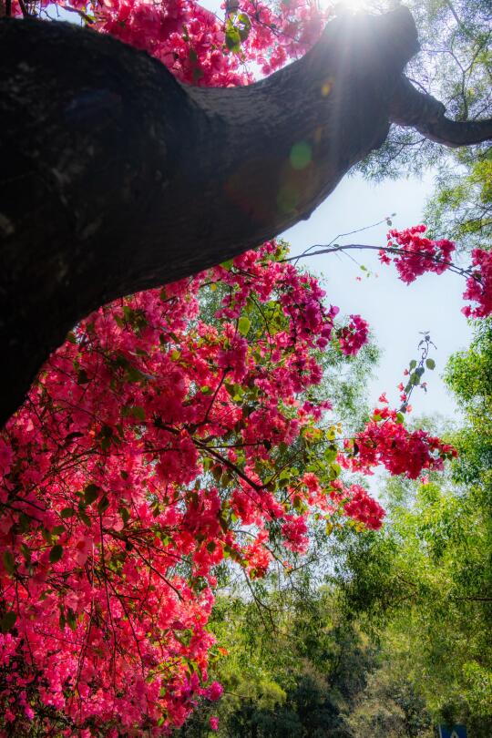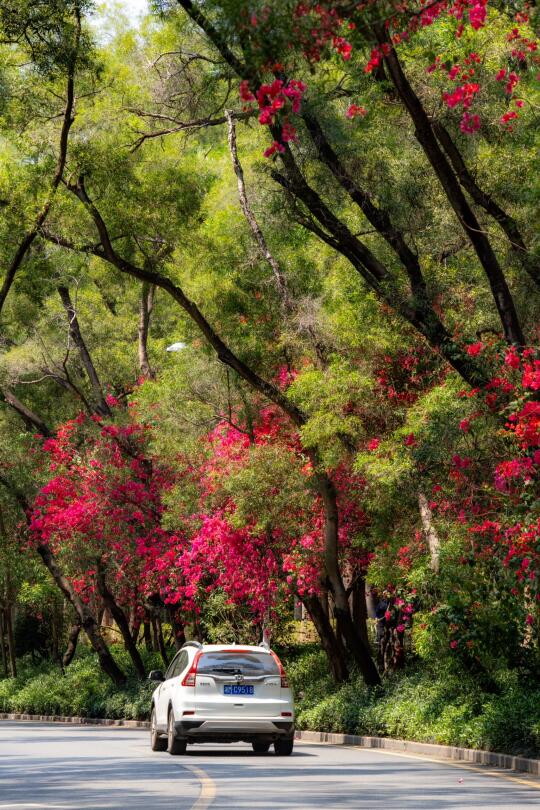 ·香山中街并非景区,而是一条长达两公里,由参天大树和三角梅环绕而成的绿荫大道,旁边还有骑行道,简直就是赏春的天花板,重点是人少到离谱,根本不需要排队等机位。宝子们放心冲,此刻正是盛花期。