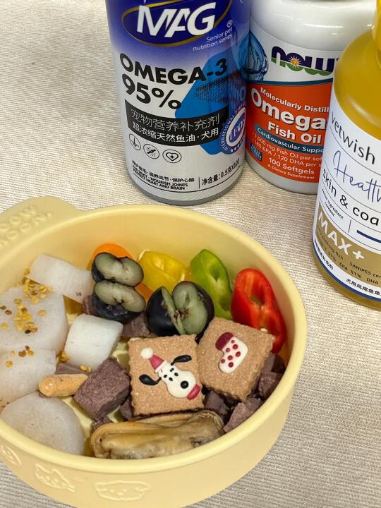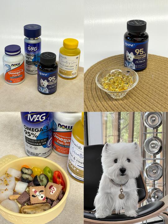 这款是英国人给西高地定制的,颗粒小好吞咽适口性不错,95%高纯度rtg鱼油,吃下来毛毛不易打结终于不用天天为洗不洗澡纠结了~而且特别添加的迷迭香提取物专门预防西高地敏感性皮肤问题,坚持吃下来再也不用频繁往美容院跑了