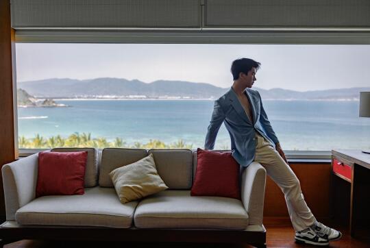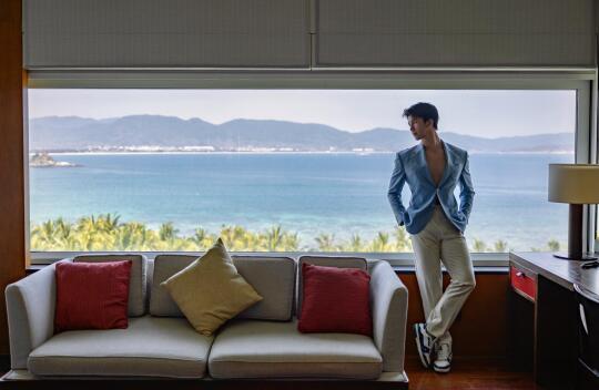 为夏天定了一套蓝色棉麻西装,穿来三亚柏悦度过周末,定的全海景房,看着果冻海水质,品鉴了
