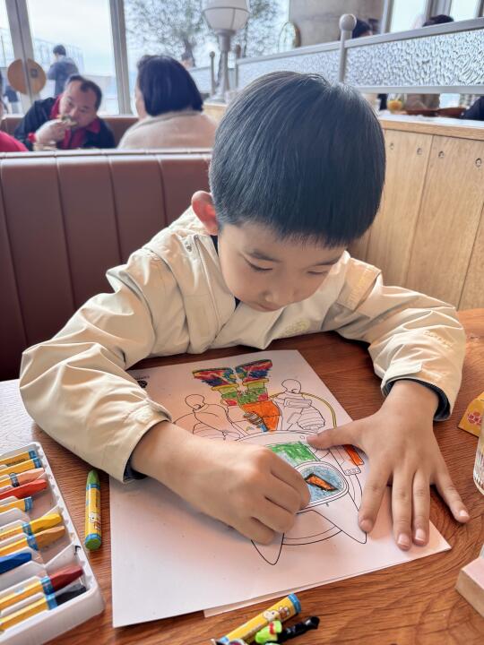 2️⃣会免费送儿童画纸和蜡笔🖍️,可以让小朋友安静创作~