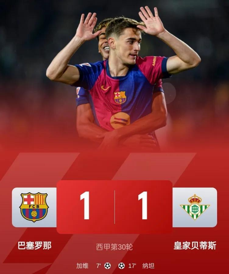 西甲榜首皇萨同时丢分! 皇马1-2遭瓦伦西亚绝杀,联赛三连胜终结! 此役,维尼修斯进球+失点,杜罗绝杀。 巴萨1-1贝蒂斯,联赛9连胜终结,4分领跑西甲积分榜! 此役,加维百场里程碑建功,费兰送助攻,纳坦扳平!