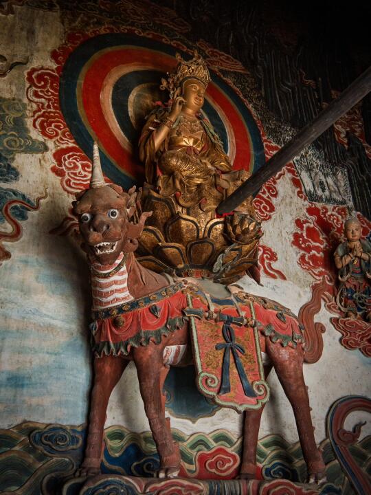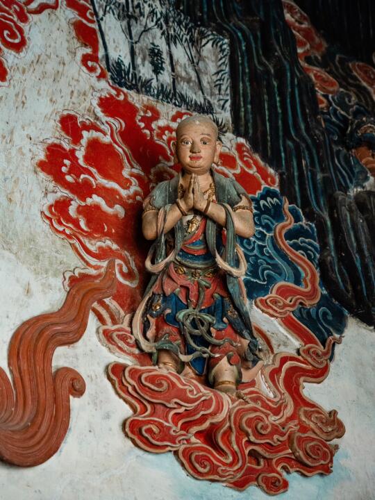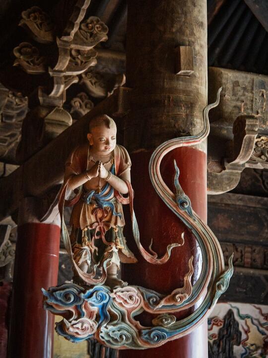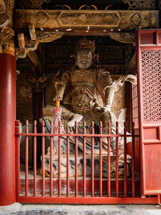 殿内四大天王塑像威风凛凛,色彩鲜艳,造型生动,展现了明代雕塑艺术的高超水平。