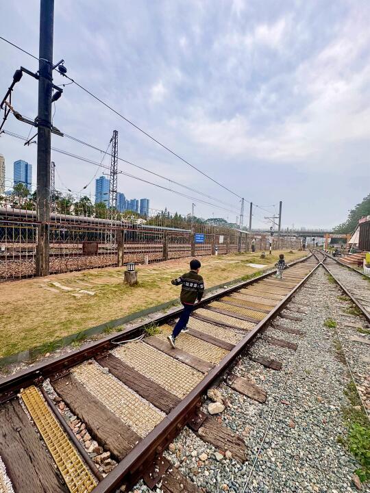 4️⃣ 仅隔着一网之隔,就能看到几分钟就呼啸而过的火车和高铁,孩子们喜欢看😁。