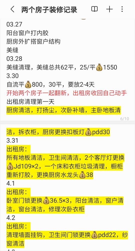 至于出租房,之前晒过被租客糟蹋的情况,让他们还原就退押金,说没时间没办法配合,那我扣押金又不答应[失望R]有些人真的自私的没底线!窗帘被剪,2个门套为了穿网线被打洞,墙上各种挂衣钩,地板脏乱无比,还给我搞坏了一个衣柜,一张床,抽油烟机3年没做过一次清洁,厕所不是人可以用的,地板好多地方破坏了,墙上还好多打钉打洞[捂脸R]1500押金真不够修补和做清洁的,没办法,只能自己动手修修补补!光pdd上买材料和衣柜,床,锁等材料就2000+了[笑哭R]但是自己动手,一个是省钱,再就是真的成就感满满…!