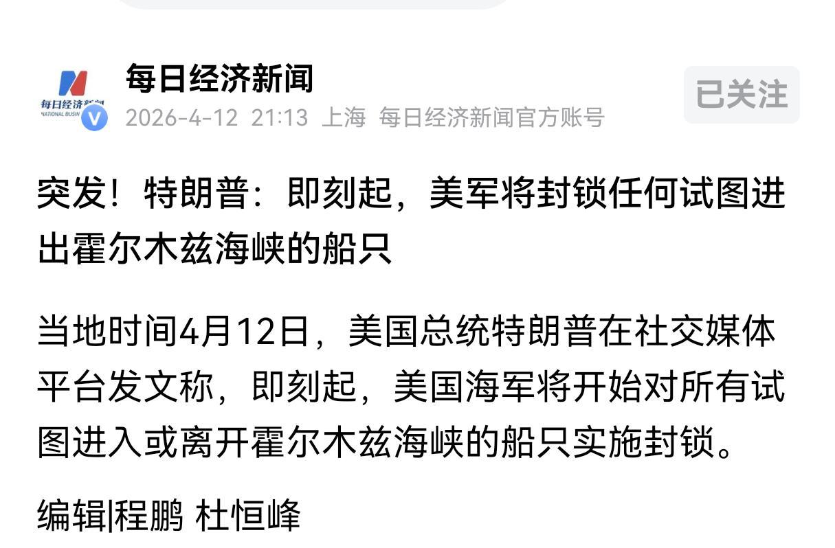 特朗普突然对外发布了霍尔木兹海峡的封锁令。特朗普声称,美国海军将开始对所有试图进入或者离开霍尔木兹海峡的船只实施封锁。