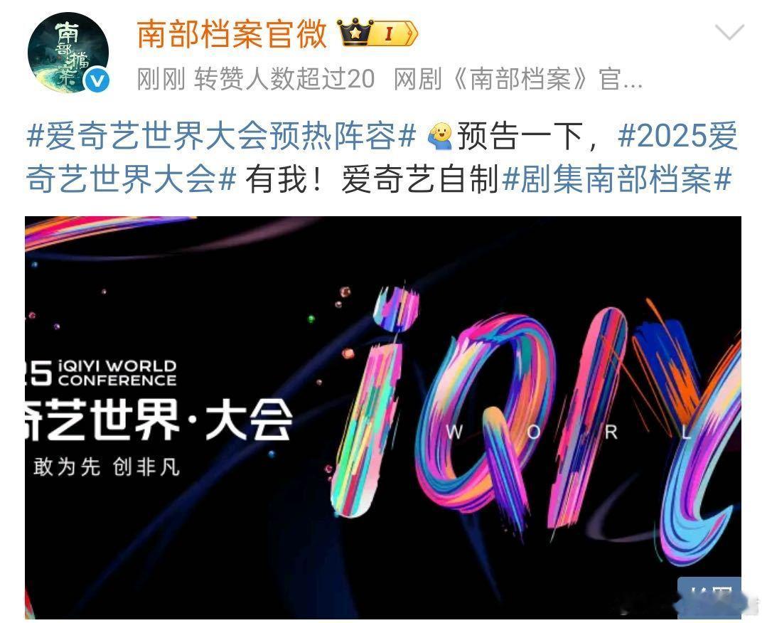 爱奇艺世界大会预热阵容 桃你有多少惊喜是我不知道的!大剧热综官博集体为2025爱奇艺世界大会助阵,大众期待的待播剧《南部档案》、《临江仙》、《淮水竹亭》、《朝雪录》,还有承包所有人欢乐的综艺新说唱、喜单、种地吧、亚洲新声、一路繁花……期待4月23日爱奇艺放大招~