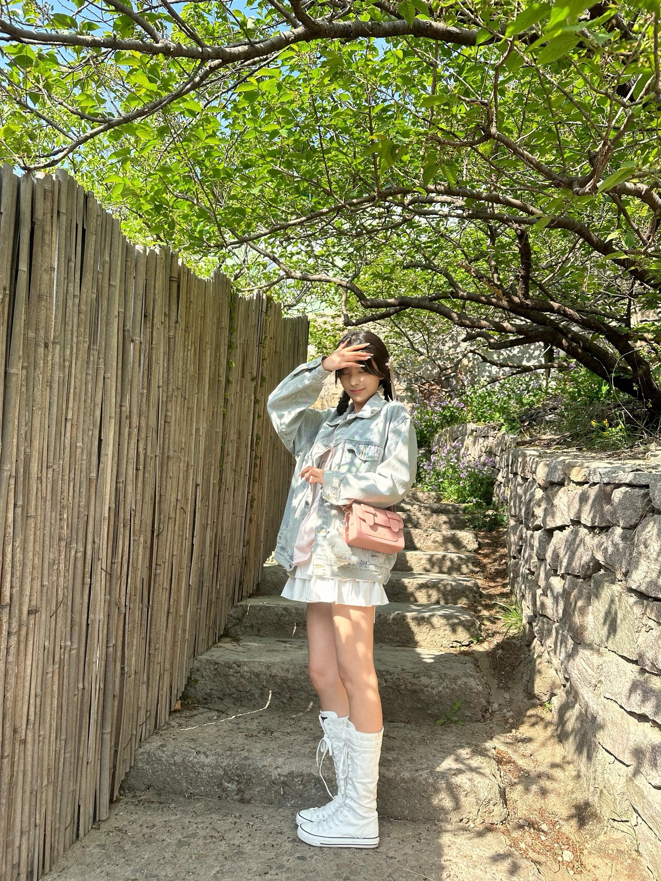白衫是薄瓷的容器盛着心跳与呼吸绿裤是柔韧的藤缠裹着骨骼的倔强~柳丝拂