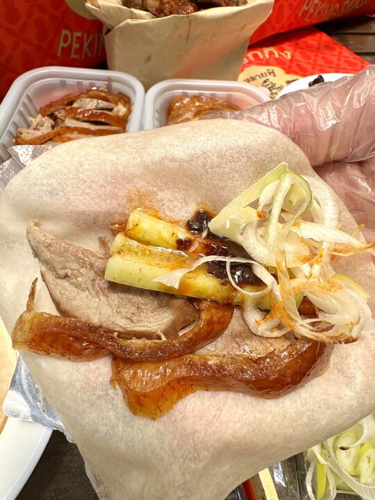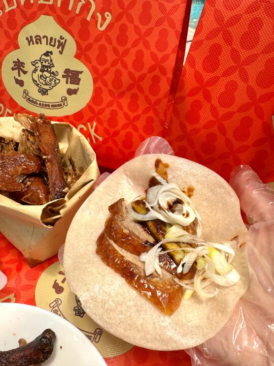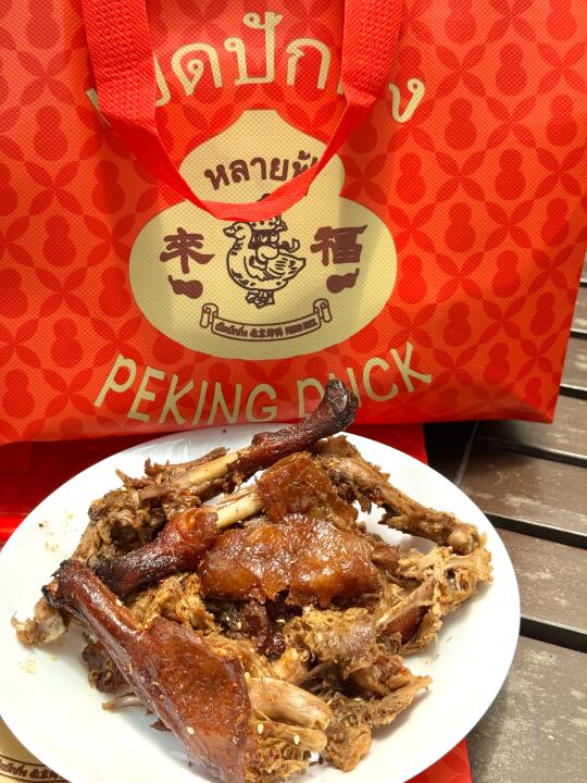 被朋友前阵子疯狂安利的北京烤鸭!今天也是吃上了!长居泰国的姐妹们都知道泰餐吃多了忍不住还是很思念中餐的🥢这家烤鸭真的和我在北京吃的味道一模一样!真的是第一口就很惊艳的感觉!