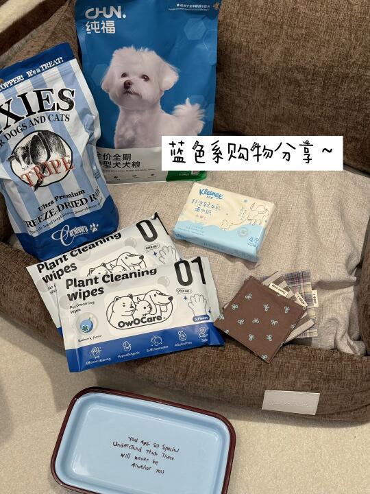 拍的时候才发现!这次是蓝色系购物分享🤔买了些吃的和用的 小狗满意脸!